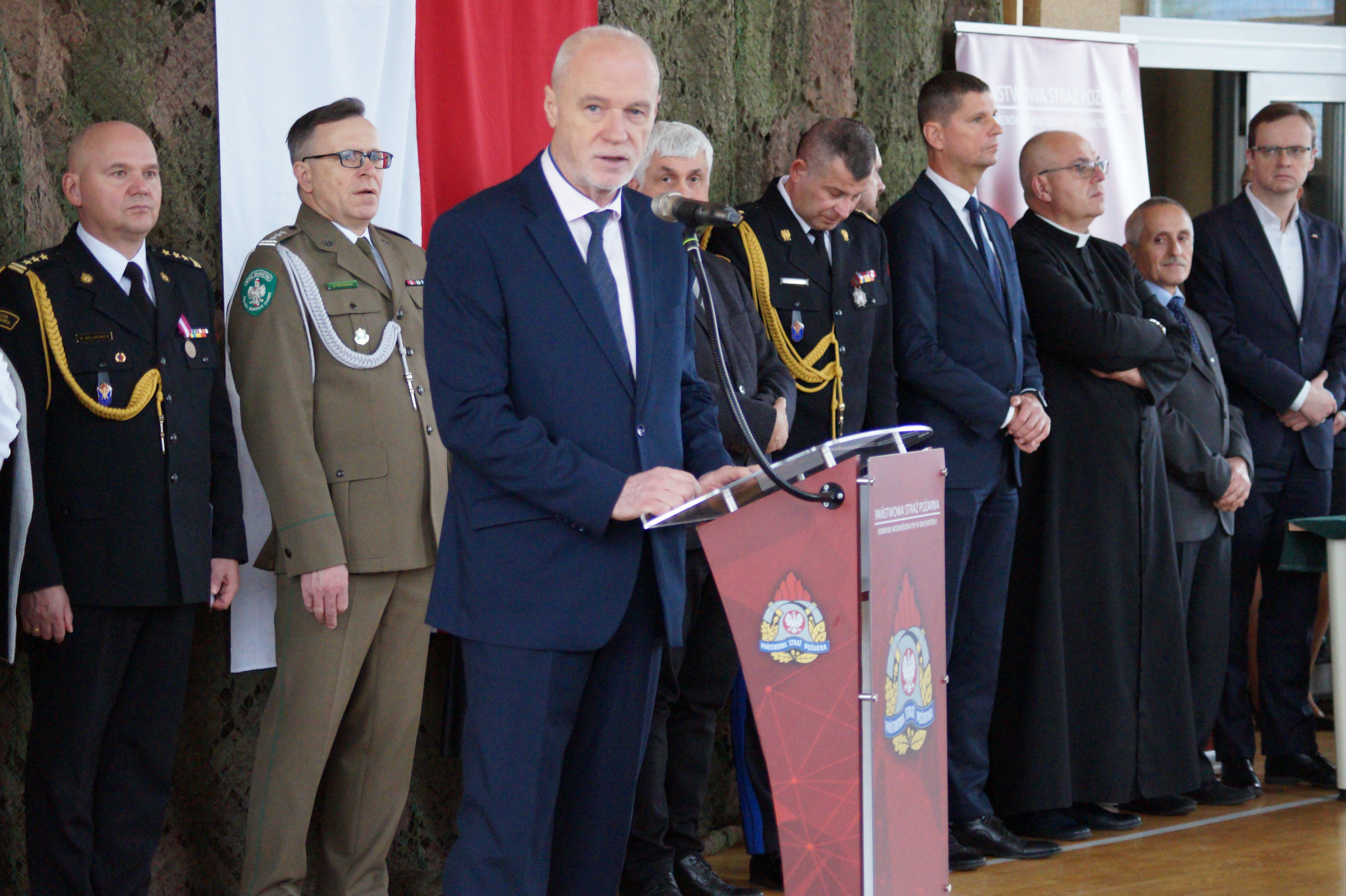Po zakończonej ceremonii Podlaski Komendant Wojewódzki PSP, nadbryg. Sebastian Zdanowicz zwrócił się w okolicznościowym przemówieniu do obecnych na zbiórce: