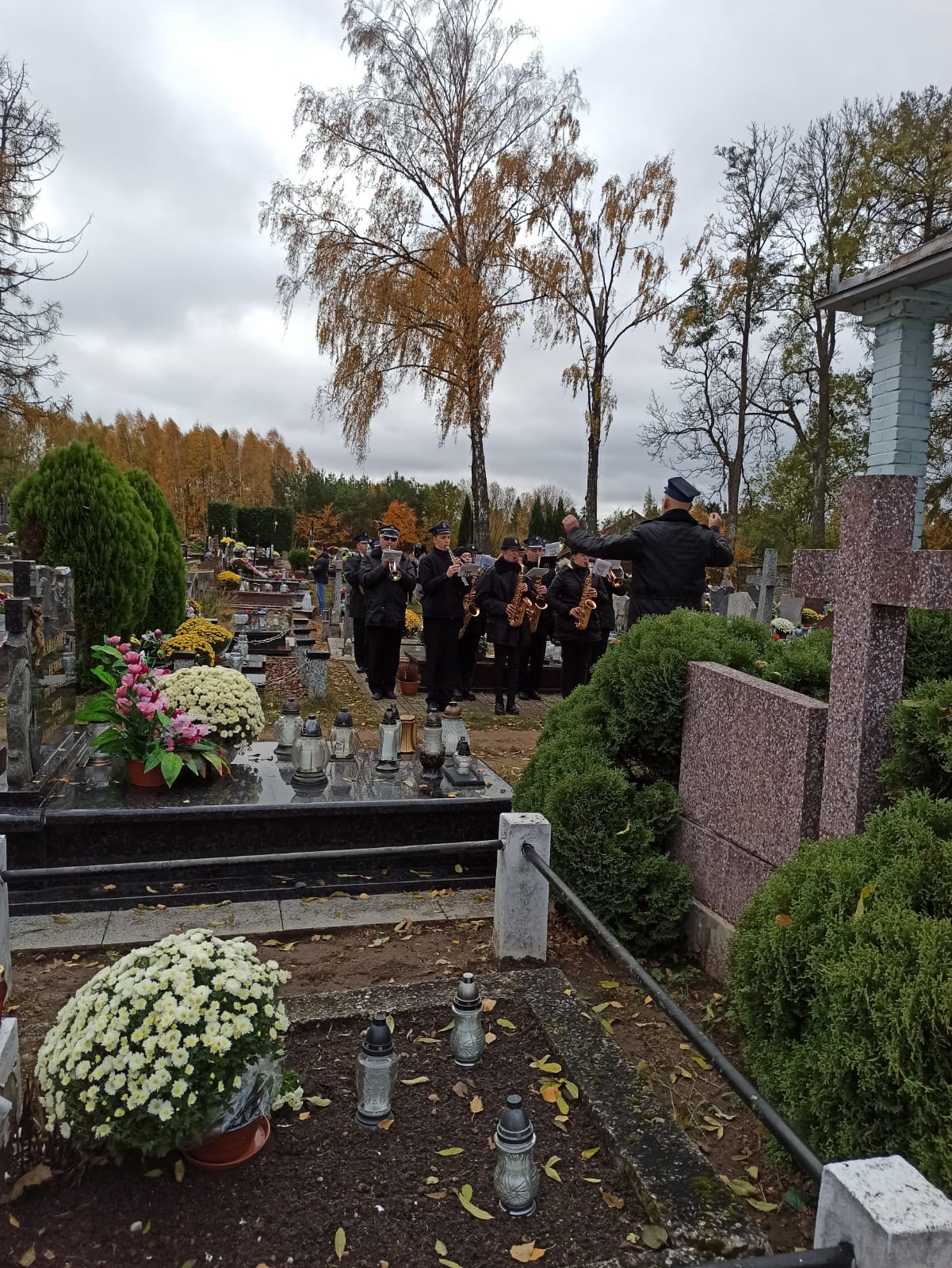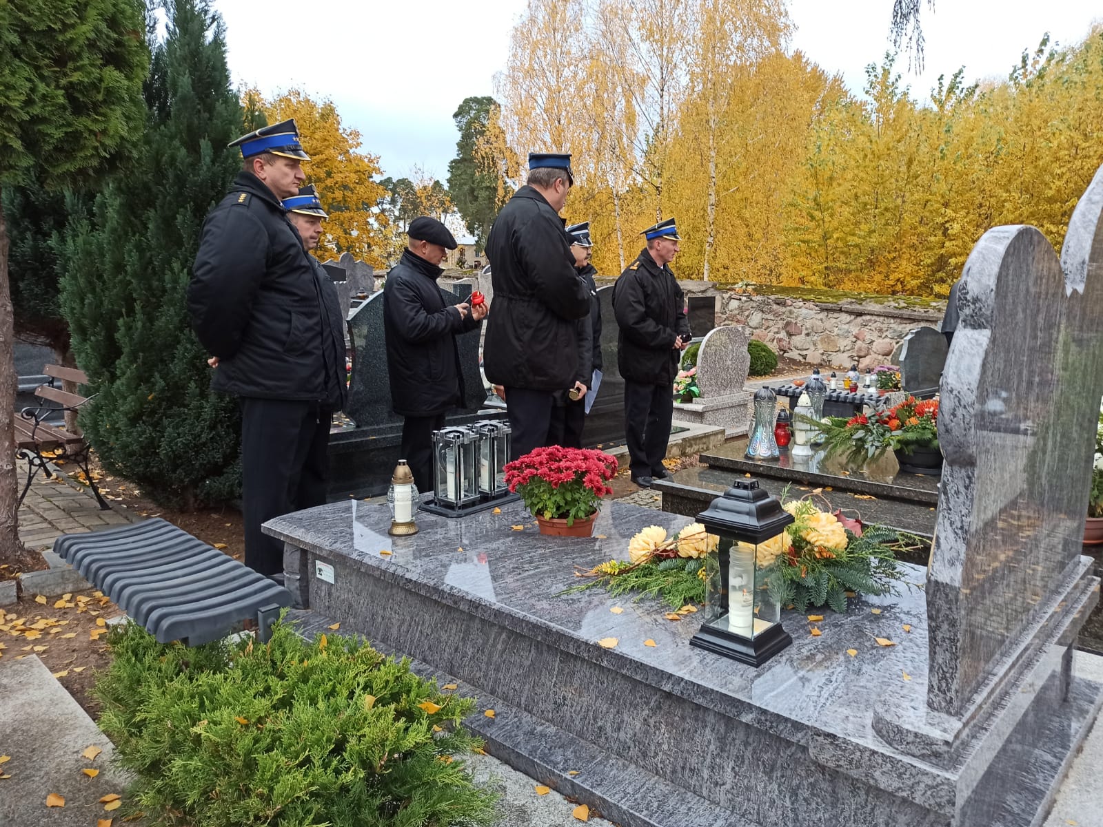 Uroczysty pochód na cmentarz w Sejnach pracowników, emerytów KP PSP w Sejnach oraz druhów OSP w dniu Wszystkich Świętych