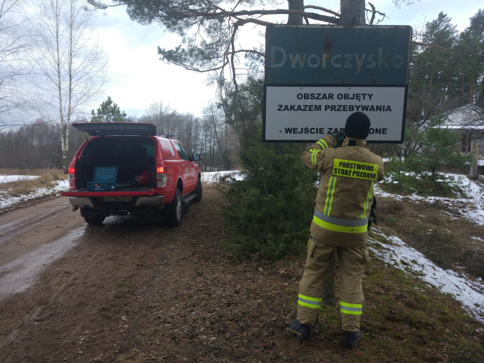 Po ogłoszeniu rozporządzenia Ministra Spraw Wewnętrznych i Administracji w sprawie wprowadzenia czasowego zakazu przebywania na określonym obszarze w strefie nadgranicznej przyległej do granicy państwowej z Republiką Białorusi strażacy z JRG w Sejnach wymienili tablice informacyjne na obszarach w których znajdują się gminy ujęte rozporządzeniem.