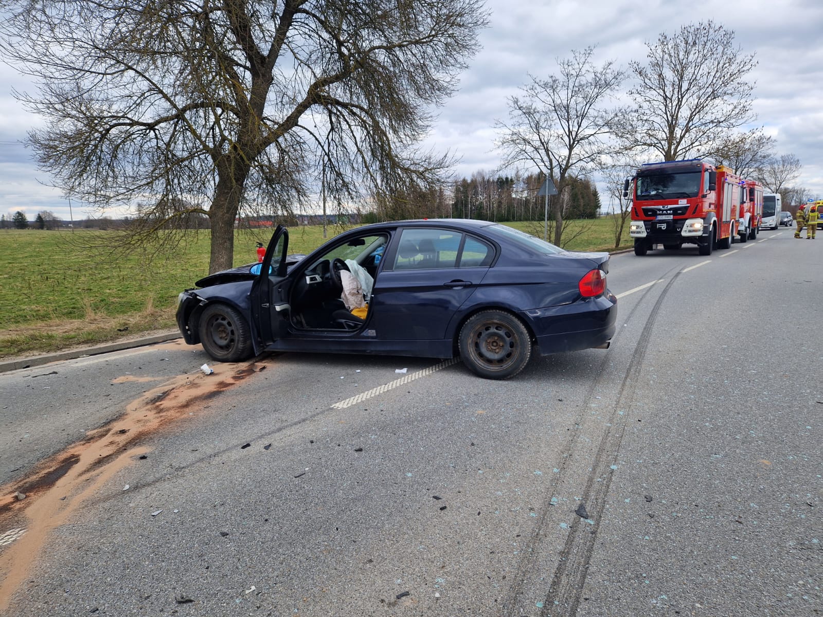 W środę (05.04.2023r.) ok. godziny 15:08 do Stanowiska Kierowania Komendanta Powiatowego PSP w Sejnach wpłynęła informacja o wypadku dwóch aut osobowych, na Drodze Wojewódzkiej DW 653, w miejscowości Radziuszki. Do zdarzenia zadysponowano 3 zastępy ratowniczo-gaśnicze z JRG Sejny oraz zastęp z OSP Krasnopol. Dowódca będący na miejscu zdarzenia poinformował, że w wypadku uczestniczyły trzy osoby, a droga w tym miejscu jest całkowicie nieprzejezdna. Zadaniem strażaków była m.in. pomoc poszkodowanym, zabezpieczenie terenu akcji, pomoc Sejneńskiej Policji w kierowaniu ruchem. Osoby uczestniczące w wypadku zostały zabrane przez Zespoły Ratownictwa Medycznego do szpitala w Sejnach i Suwałkach.