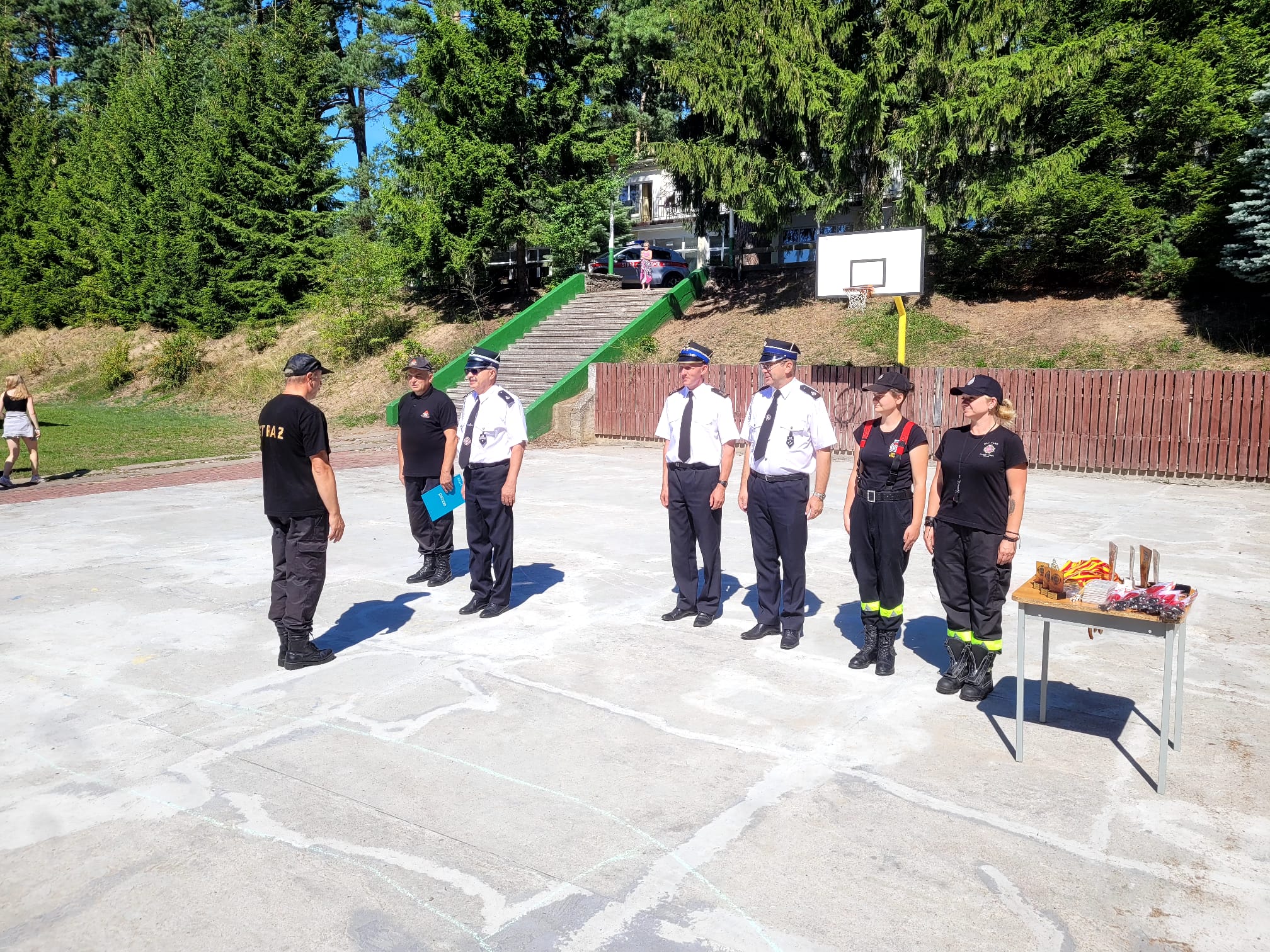 05 sierpnia 2022 r. nastąpiło oficjalne zakończenie "Obozu Młodzieżowych Drużyn Pożarniczych 2022 r. w Ośrodku Wypoczynkowym Dzieci i Młodzieży Leśny Dwór w Ełku”, podczas którego uczestniczyły m.in. dzieci oraz młodzież z powiatu sejneńskiego. Obecni na uroczystej zbiórce zakończenia obozu Komendant Powiatowy PSP w Sejnach bryg. Artur Przeborowski, Prezes OSP Sejny dh Zdziasław Czakis, Prezes OSP Barszczewo dh Krzysztof Konicki podziękowali zgromadzonej młodzieży za uczestnictwo w obozie oraz życzyli dalszego zapału w zdobywaniu umiejętności z dziedziny pożarnictwa. Na zbiórce wyróżniono również samych uczestników obozu. Tegoroczna edycja trwała od 25 lipca do 05 sierpnia 2022 r. i była organizowana przy udziale OSP Barszczewo oraz OSP Sejny dla młodzieży z powiatów: białostockiego, hajnowskiego i sejneńskiego. W ośrodku wypoczynkowym w Ełku przebywało ponad 50 osób, z których 18 osób to młodzi adepci pożarnictwa z Sejneńszczyzny. W czasie pobytu młodzi strażacy pod okiem druhów OSP i opiekunów pedagogów brali udział w zajęciach teoretycznych i praktycznych oraz profilaktyce przeciwdziałania i rozwiązania problemów uzależnień.