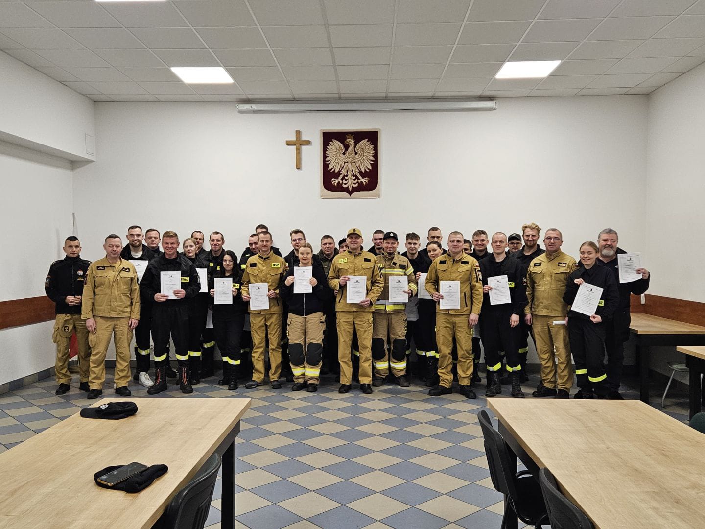 Na zakończenie kursu odbyła się krótka uroczystość, podczas której druhowie otrzymali oficjalne zaświadczenia potwierdzające zdobyte kwalifikacje. Instruktorzy oraz przedstawiciele PSP pogratulowali ochotnikom determinacji i gotowości do niesienia pomocy innym.