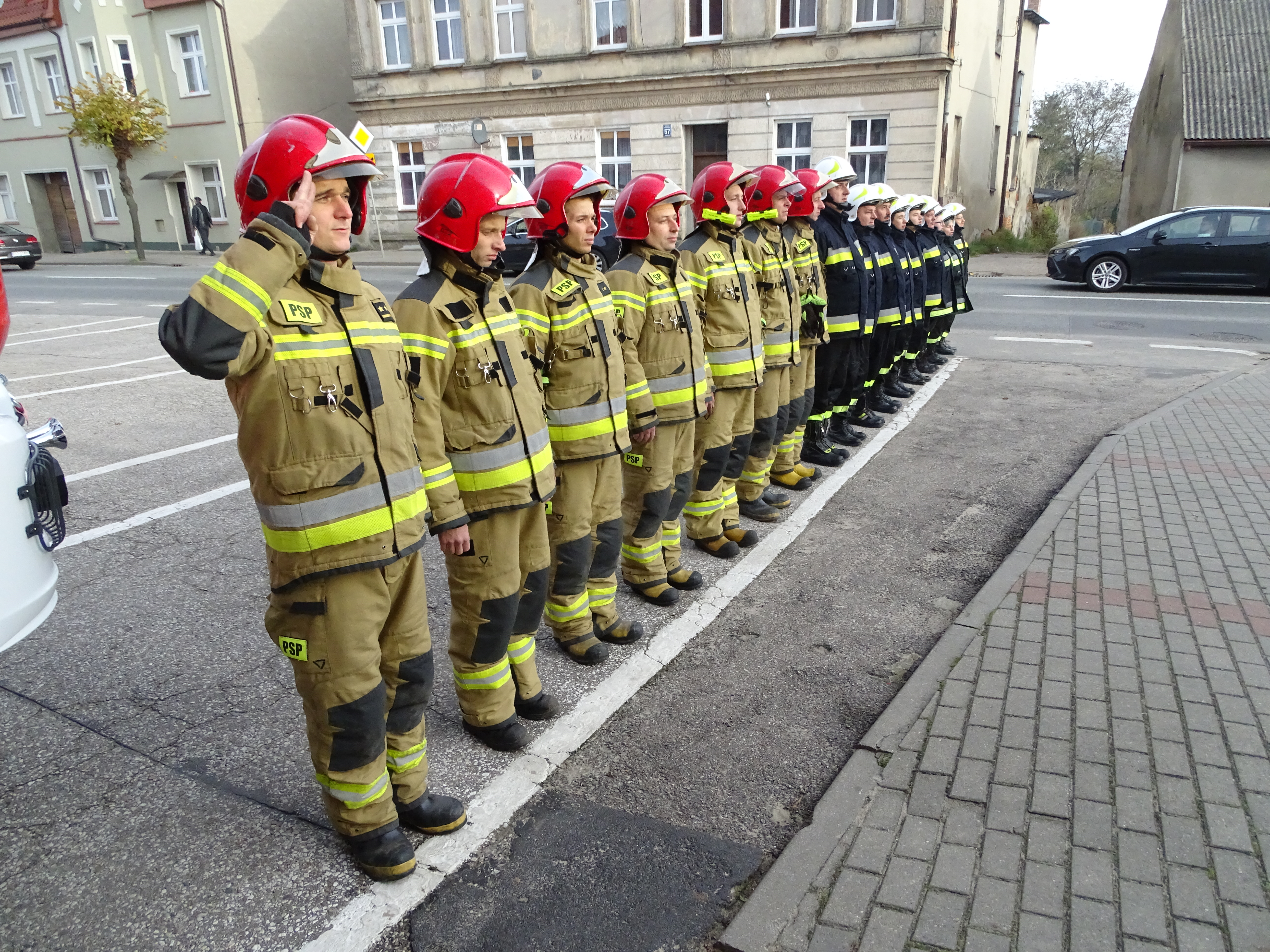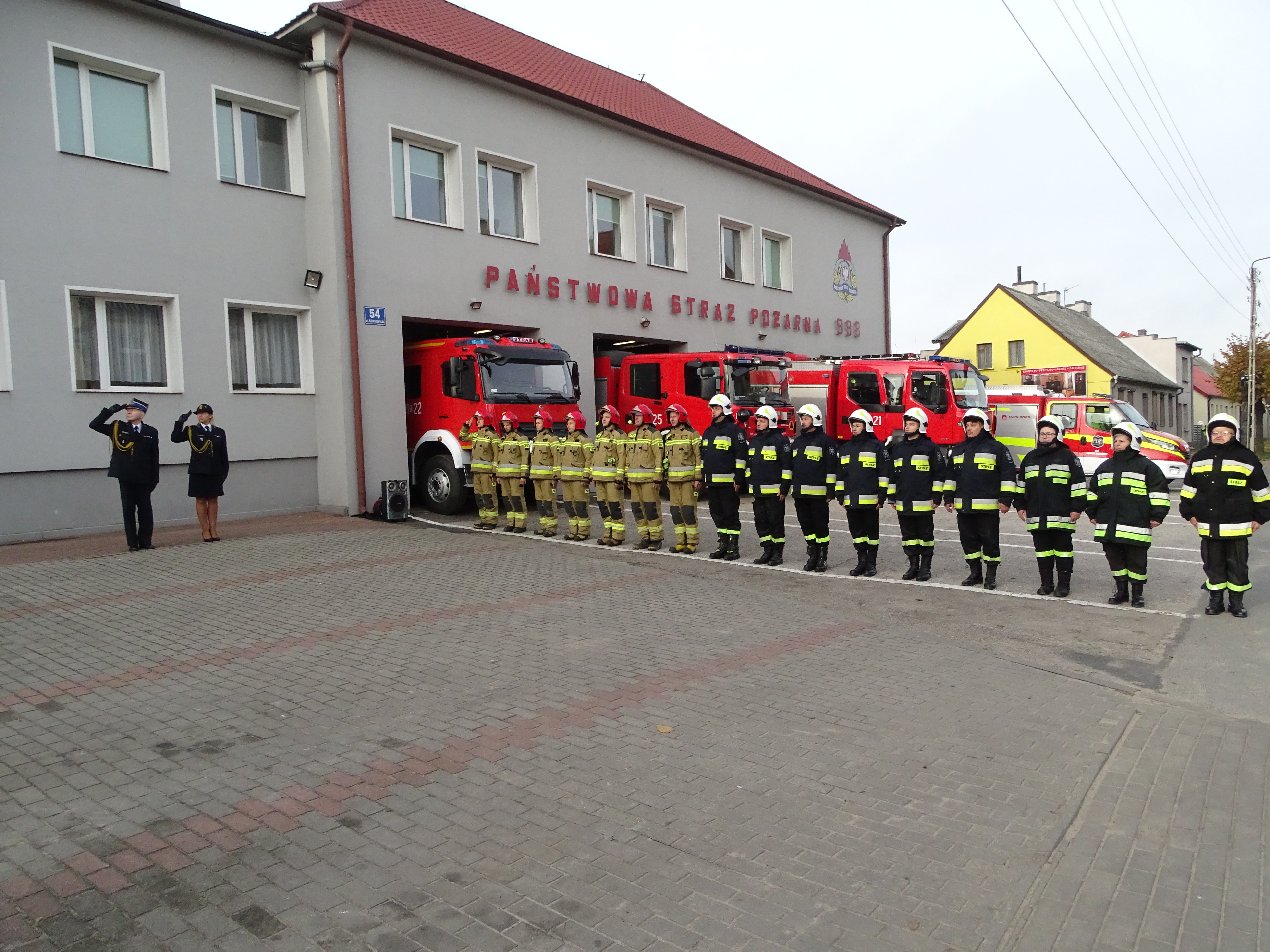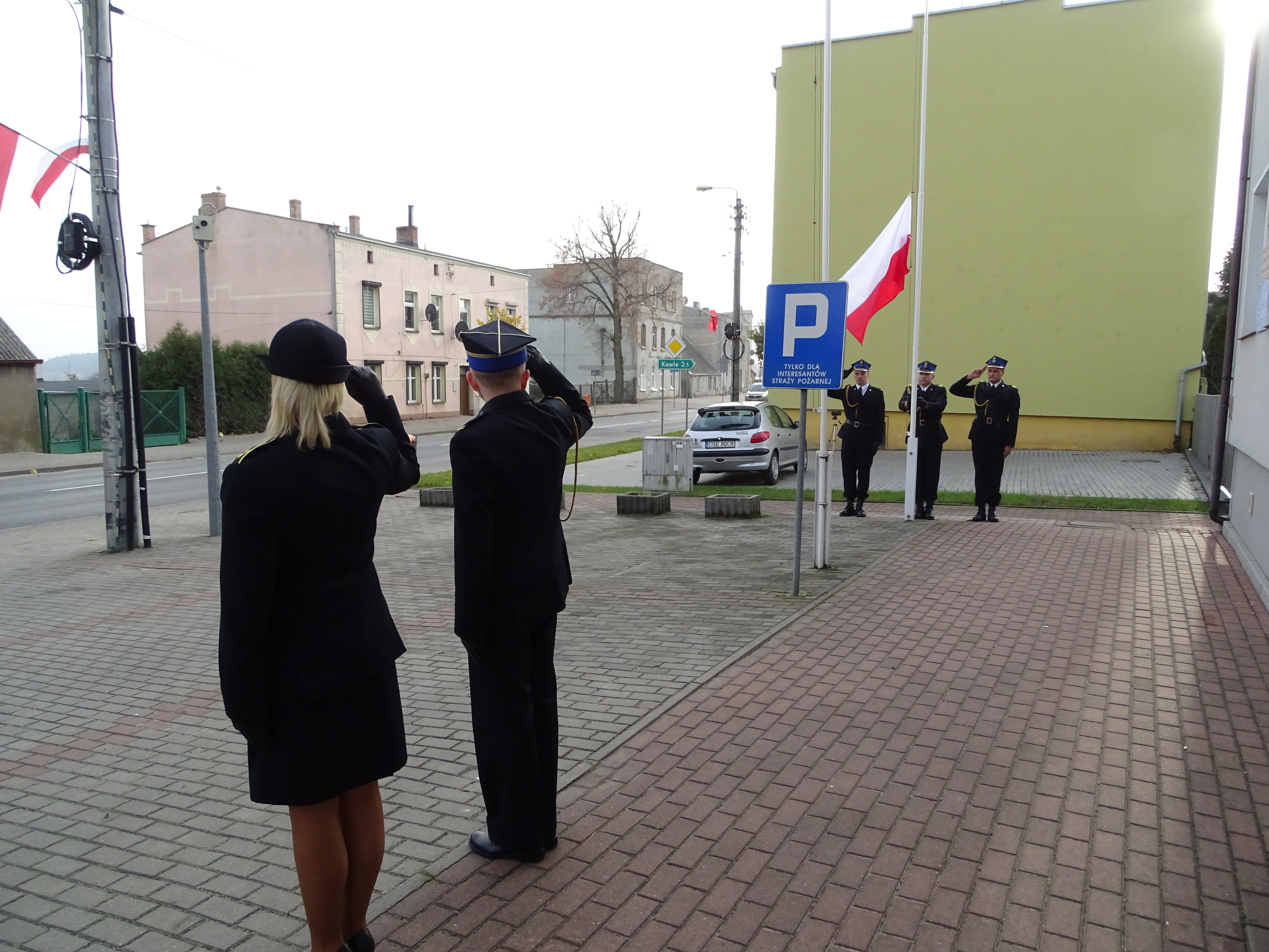 Punktualnie o godz. 12:00 przed budynkiem Komendy Powiatowej Państwowej Straży Pożarnej Komendant Powiatowy st. bryg. Maciej Suchomski rozpoczął uroczystość podniesienia flagi państwowej na maszt. Strażacy Państwowej oraz Ochotniczej Straży Pożarnej uczestniczący w uroczystości wspólnie odśpiewali Hymn Państwowy Rzeczypospolitej Polskiej.