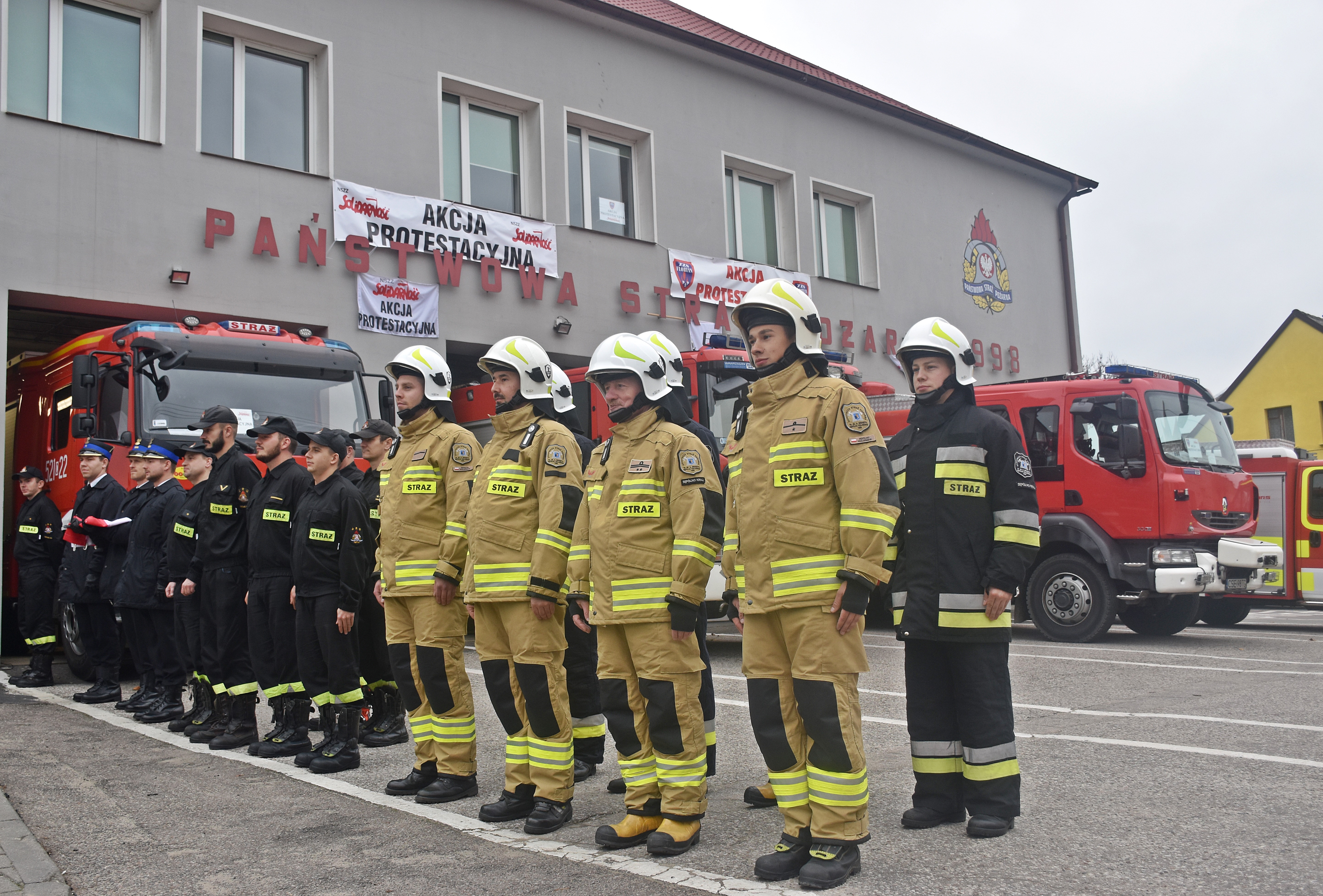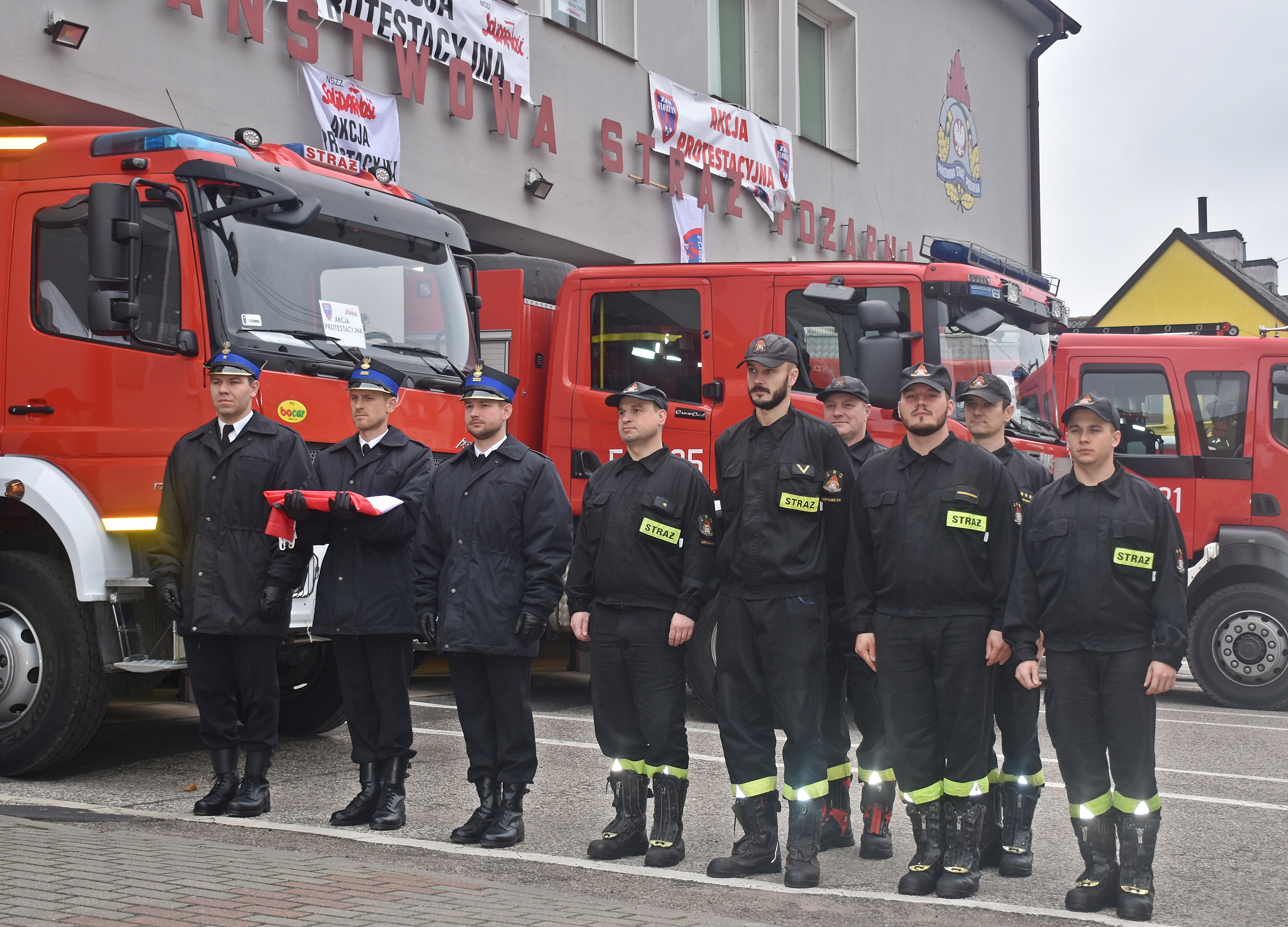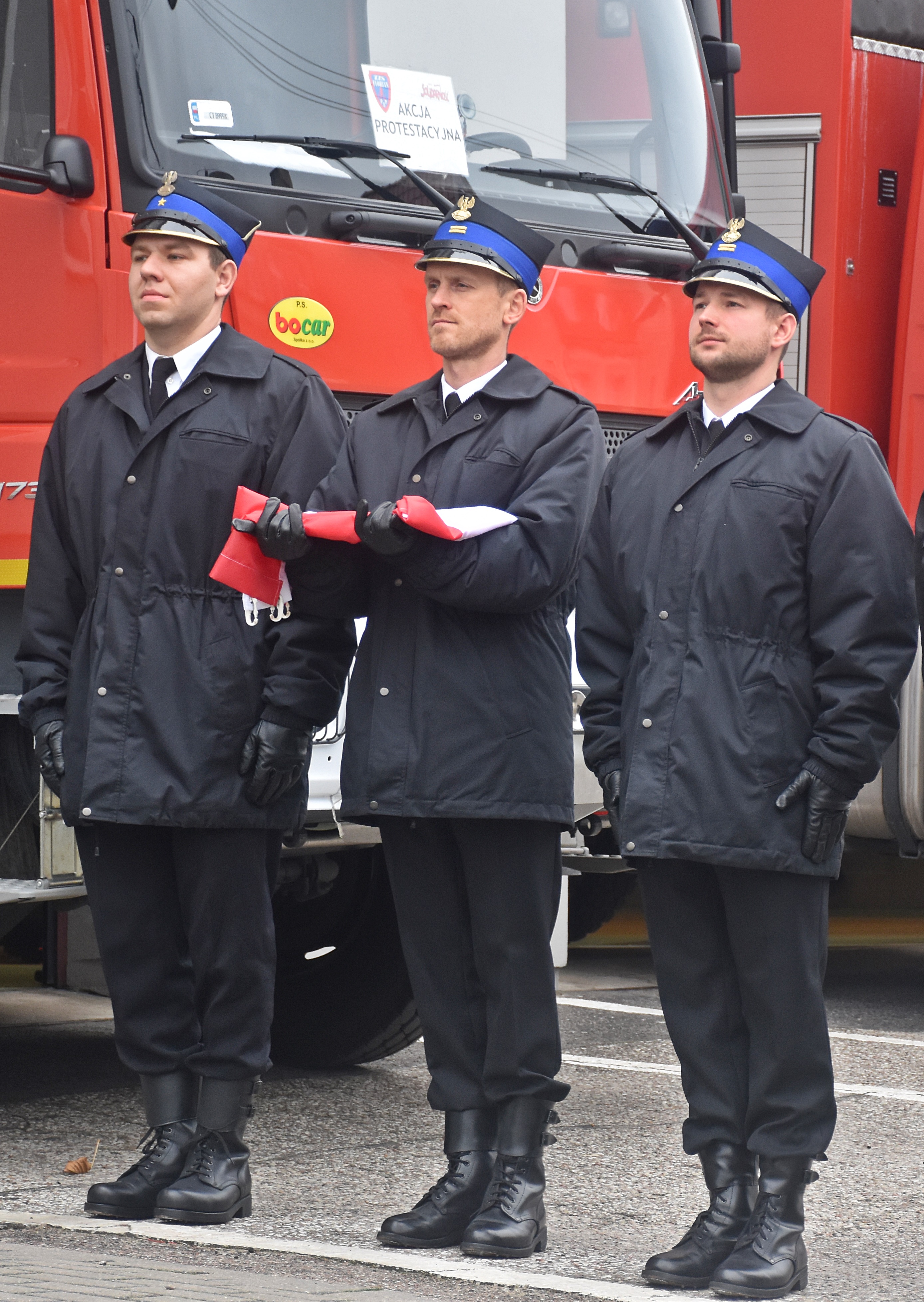Punktualnie o godz. 12:00 przed budynkiem Komendy Powiatowej Państwowej Straży Pożarnej Komendant Powiatowy st. bryg. Maciej Suchomski rozpoczął uroczystość podniesienia flagi państwowej na maszt. Strażacy Państwowej oraz Ochotniczej Straży Pożarnej uczestniczący w uroczystości wspólnie odśpiewali Hymn Państwowy Rzeczypospolitej Polskiej.