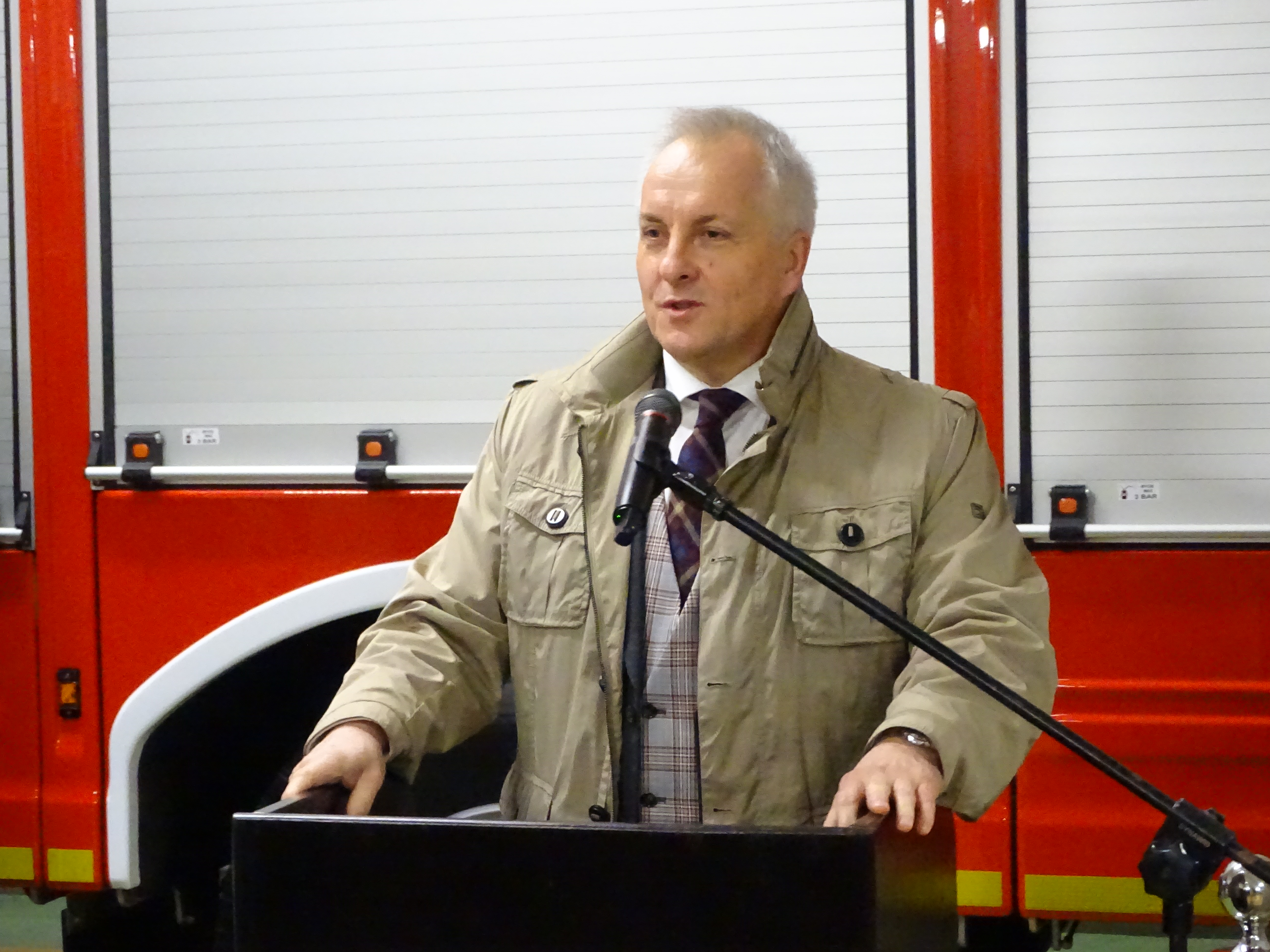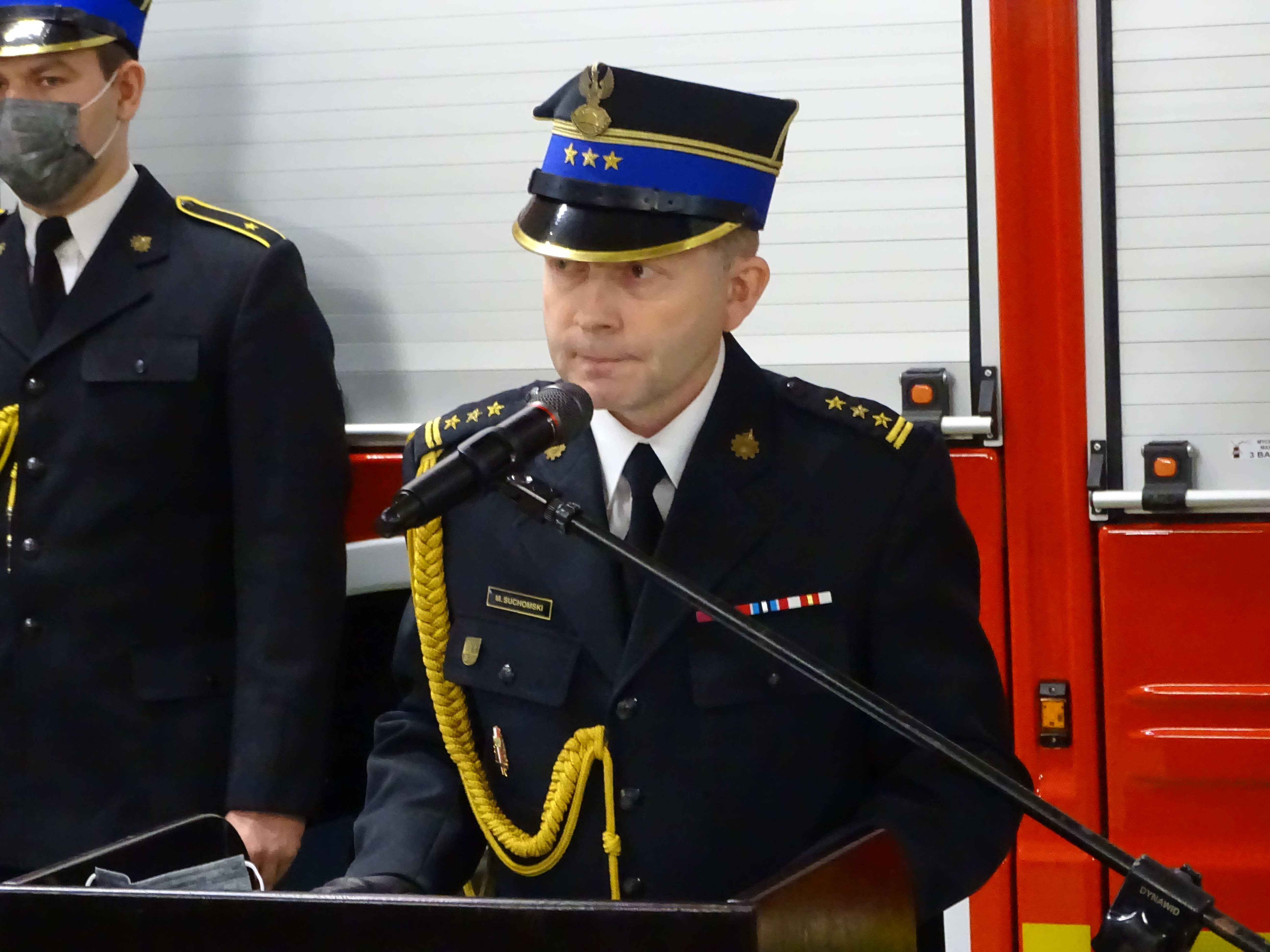 Ponadto Komendant Powiatowy PSP w Sępólnie Krajeńskim st. bryg. Maciej Suchomski w swoim wystąpieniu wyraził słowa podziękowania Kujawsko-Pomorskiemu Komendantowi Wojewódzkiemu za pomoc i przekazanie nowoczesnego pojazdu na potrzeby tutejszej JRG oraz bezpieczeństwa mieszkańców powiatu sępoleńskiego.
