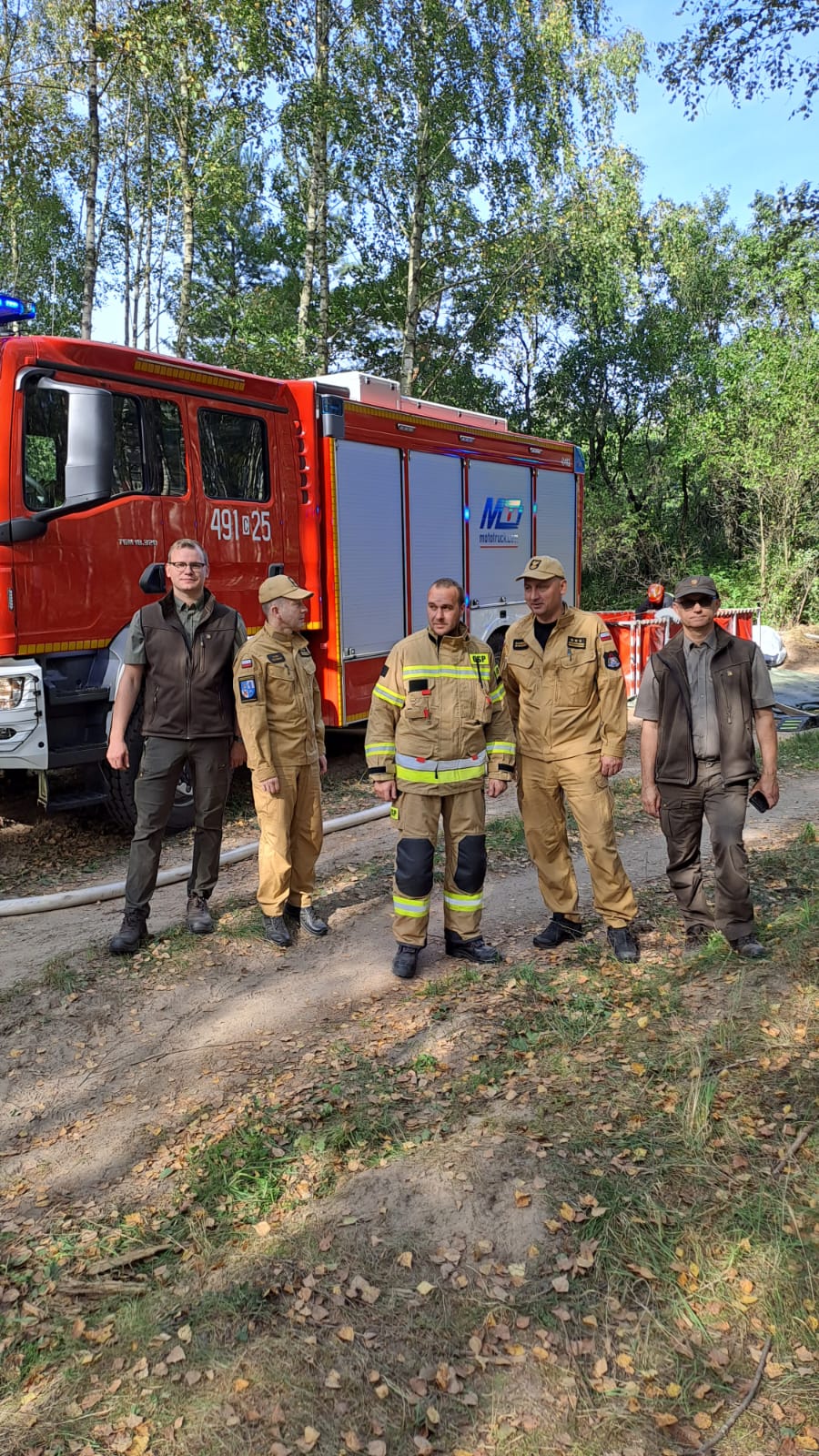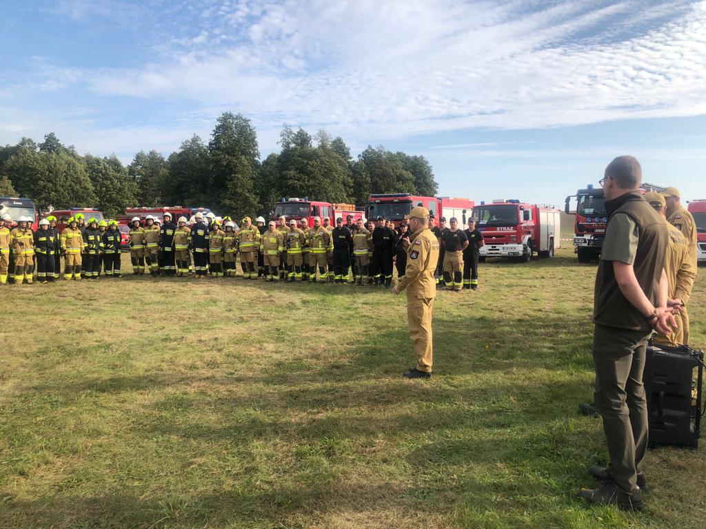 Po zakończeniu ćwiczeń Nadleśniczy Nadleśnictwa Runowo Marcin Bujewski przekazał na ręce Komendantów Powiatowych PSP z Nakła nad Notecią oraz Sępólna Krajeńskiego czeki pieniężne.