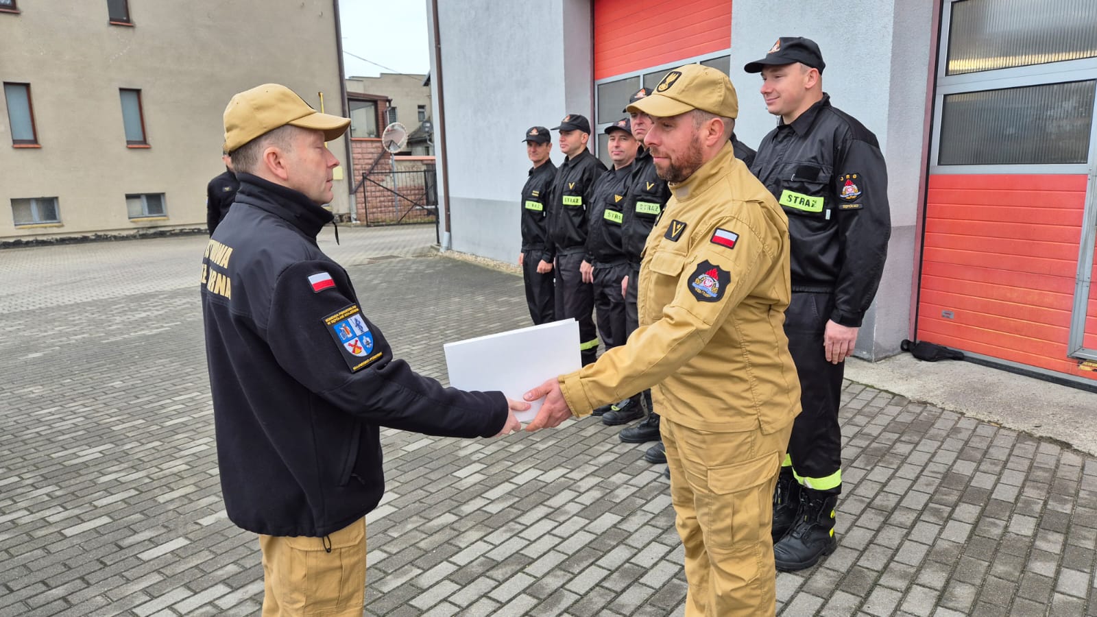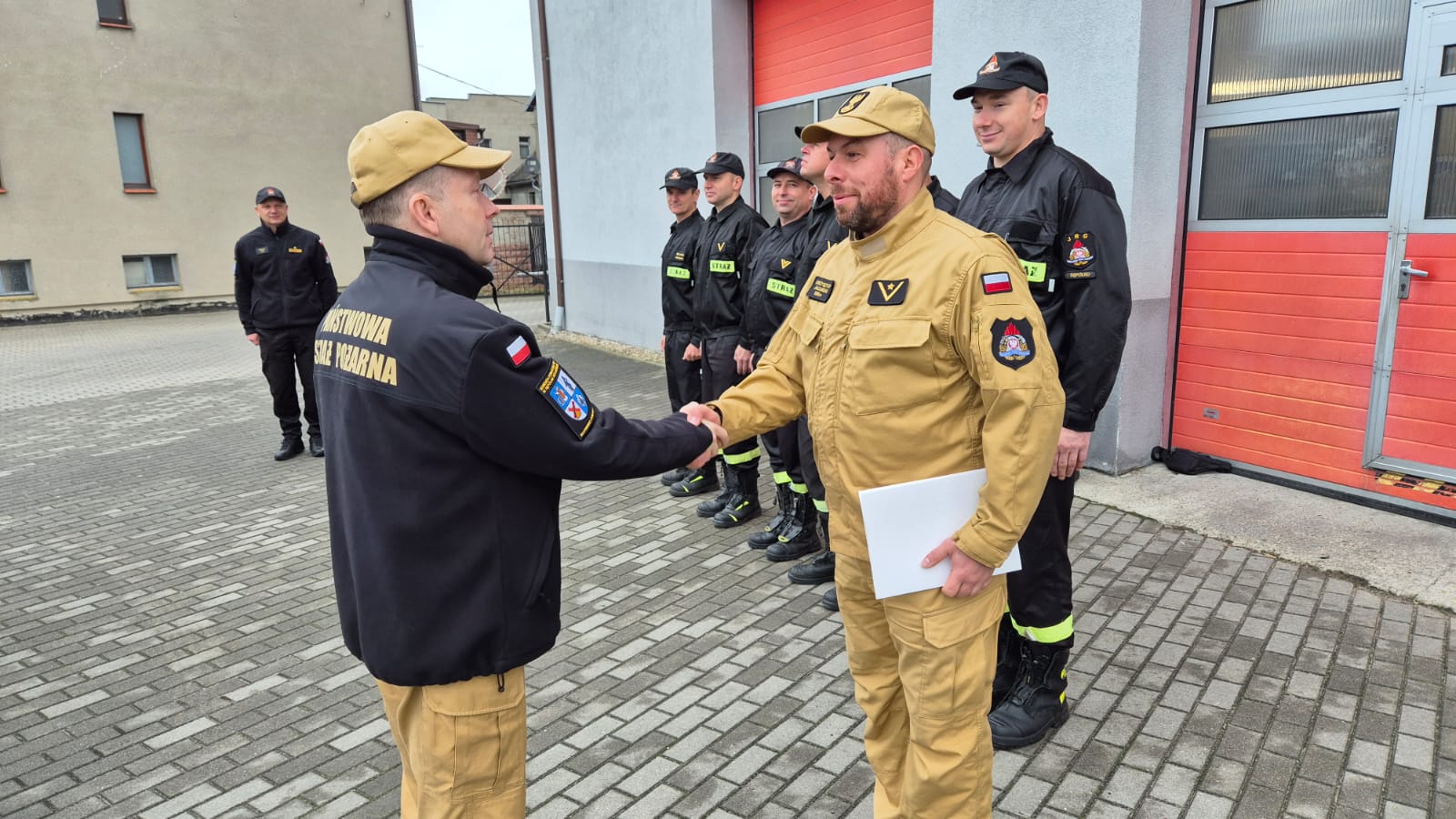 W dniu 14.10.2024 roku na placu Komendy Powiatowej PSP w Sępólnie Krajeńskim odbyła się uroczysta zbiórka z okazji wręczenia młodszemu aspirantowi Krzysztofowi Jacuńskiemu listu gratulacyjnego za 20 lat pracy i służby. Serdecznie gratulujemy wyróżnionemu funkcjonariuszowi i życzymy Mu dalszego rozwoju, awansów oraz aby służba dla drugiego człowieka była dla Niego zawsze źródłem radości i osobistej satysfakcji.
