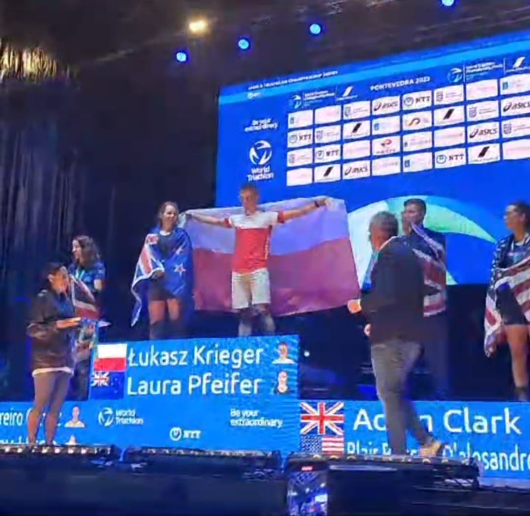 Już po kilku dniach tj. 29 września 2023 roku Łukasz zdobył Mistrzostwo Europy służb mundurowych w triathlonie na dystansie sprinterskim (Europe Police Fire Games 2023 Torrevieja). Podium w klasyfikacji open uzupełnili hiszpańscy policjanci Rodriguez i Rodlan. W triathlonie uczestniczył również strażak z Torunia – Jakub Piechowiak.