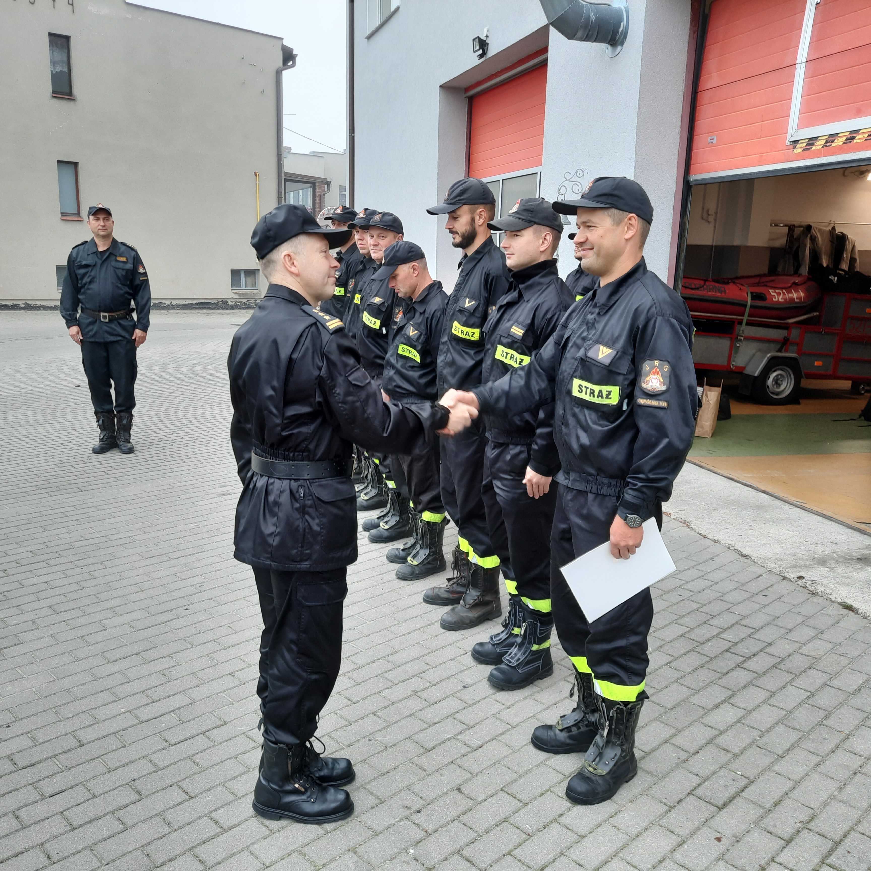 W dniu 5 października na placu Komendy Powiatowej PSP w Sępólnie Krajeńskim odbyła się zbiórka z okazji wręczenia st. ogn. Sławomirowi Drobiewskiemu – starszemu operatorowi sprzętu nagrody jubileuszowej za 25 lat pracy i służby. Nagrodę wręczył Komendant Powiatowy PSP w Sępólnie Krajeńskim st. bryg. Maciej Suchomski, który w przemowie podziękował za wzorowe wypełnianie obowiązków służbowych i życzył kolejnych owocnych lat w służbie.