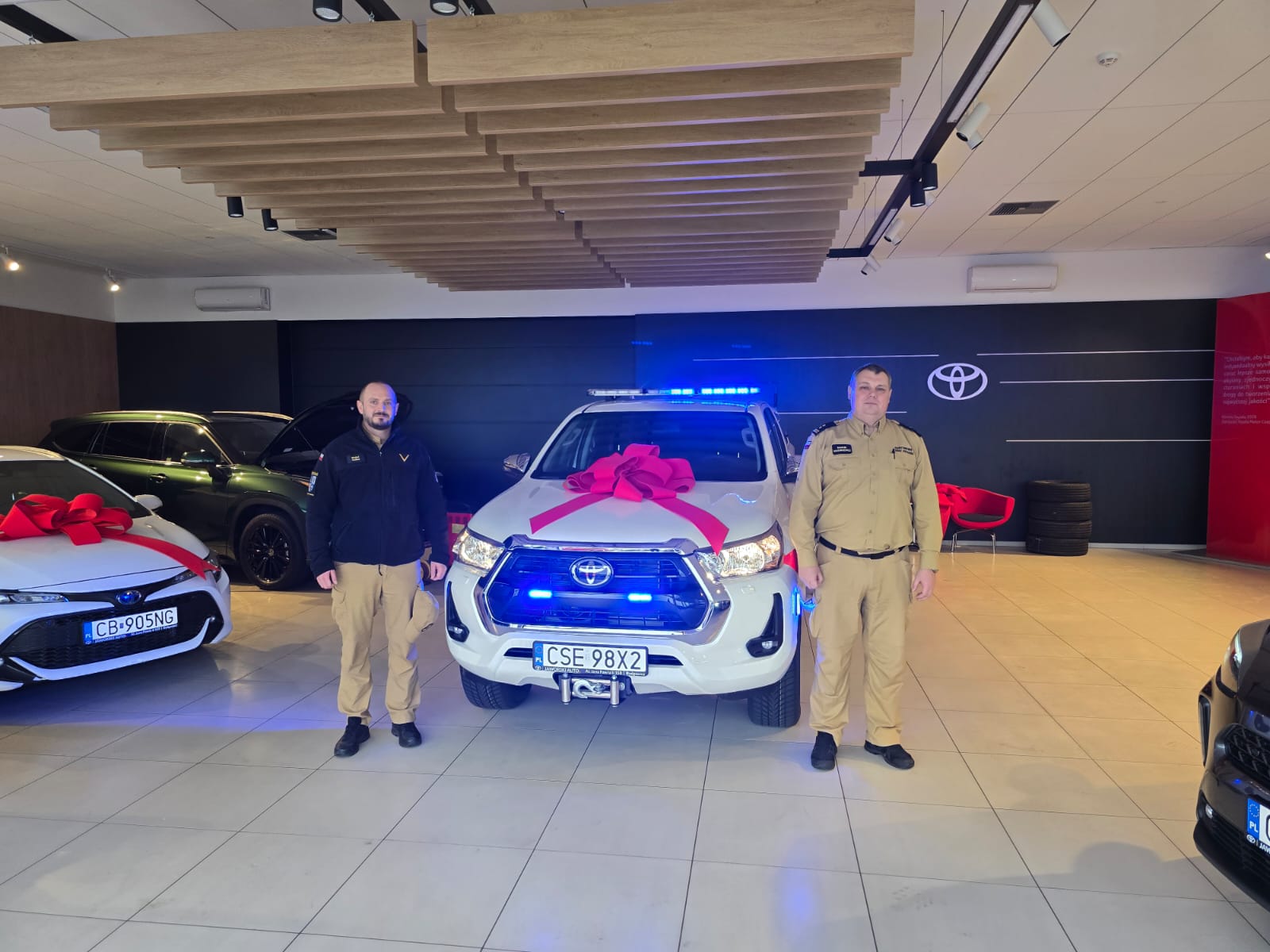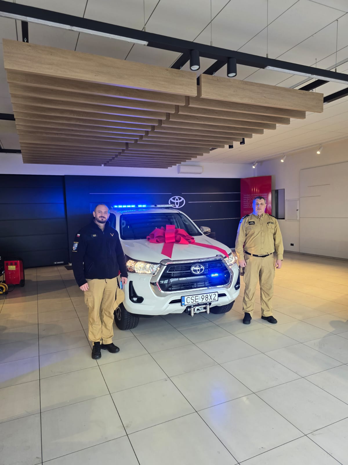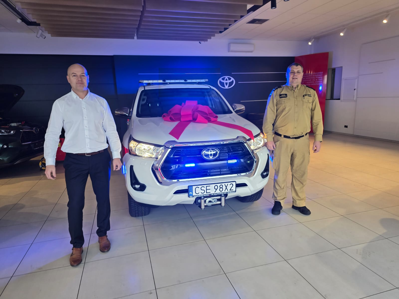 W dniu 23 grudnia 2025 roku w siedzibie Toyota Jaworski Auto w Bydgoszczy dokonano odbioru lekkiego samochodu rozpoznawczo-ratowniczego marki Toyota Hilux przeznaczonego dla Komendy Powiatowej Państwowej Straży Pożarnej w Sępólnie Krajeńskim.