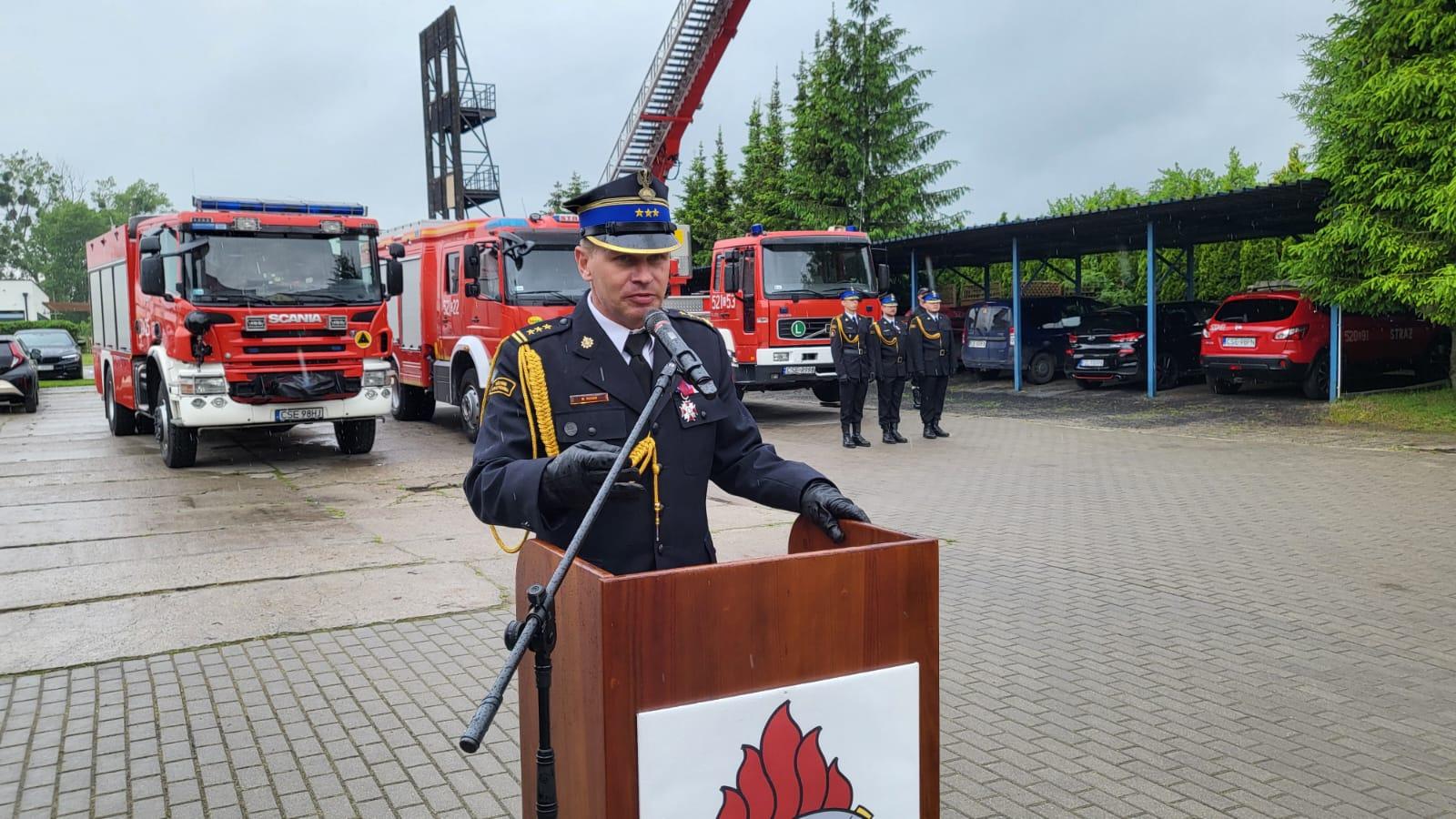 W dniu 23 maja 2024 r. w Komendzie Powiatowej Państwowej Straży Pożarnej w Sępólnie Krajeńskim odbyła się uroczystość obchodów Dnia Strażaka. Wśród licznie przybyłych gości obecni byli: Zastępca Kujawsko-Pomorskiego Komendanta Wojewódzkiego Państwowej Straży Pożarnej starszy brygadier Marek Rusoń, Anna Tabuła dyrektor biura poselskiego Pani Iwony Kozłowskiej Posłanki na Sejm Rzeczypospolitej Polskiej, Wicestarosta Powiatu Sępoleńskiego Andrzej Marach, Komendant Powiatowy PSP w Tucholi bryg. Arkadiusz Kroll, Komendant Powiatowy PSP w Chojnicach bryg. Henryk Koźlewicz, Prezes Zarządu Oddziału Powiatowego Związku Ochotniczych Straży Pożarnych RP w Sępólnie Krajeńskim dh Artur Cetnarski, Przewodniczący Rady Powiatu Marek Chart, Komendant Powiatowy Policji nadkom. Marcin Szulczyk, Burmistrzowie i samorządowcy z Kamienia Krajeńskiego, Sępólna Krajeńskiego, Więcborka, Wójt Gminy Sośno, nadleśniczowie, prezesi i komendanci gminni OSP, przedstawiciele zaprzyjaźnionych firm, prasy i mediów oraz pracownicy i funkcjonariusze Komendy Powiatowej PSP w Sępólnie Krajeńskim. Nie zabrakło również grupy strażackich emerytów.