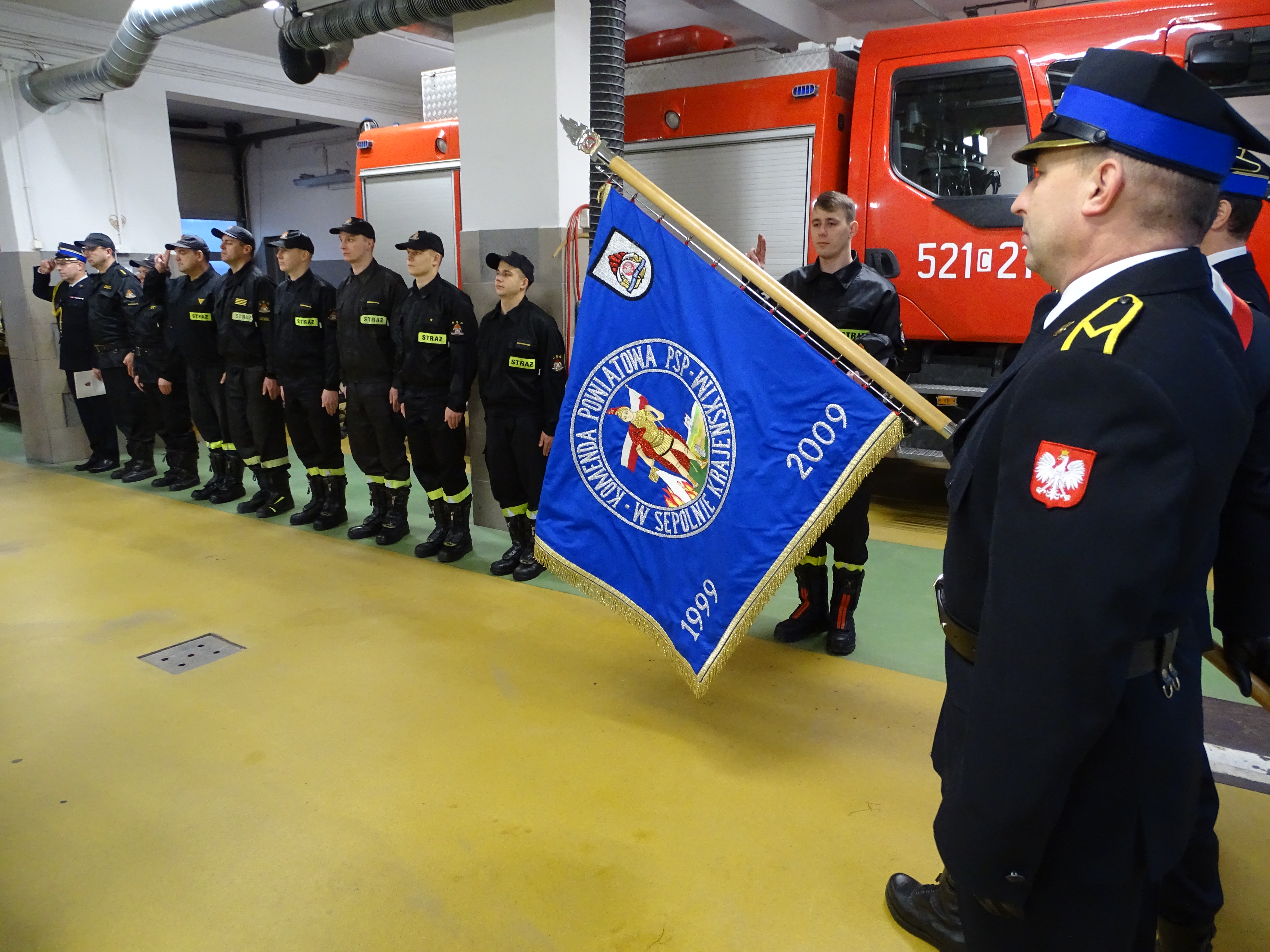 W dniu 09 stycznia 2023r. podczas zmiany służby podziału bojowego odbyło się uroczyste złożenie ślubowania na strażaka Państwowej Straży Pożarnej. Ślubowanie złożył nowy funkcjonariusz Komendy Powiatowej w Sępólnie Krajeńskim Mariusz Mosek. Przyjmując ślubowanie rotę przysięgi odczytał Komendant Powiatowy st. bryg. Maciej Suchomski, który pogratulował młodemu strażakowi i powitał w szeregach Państwowej Straży Pożarnej.