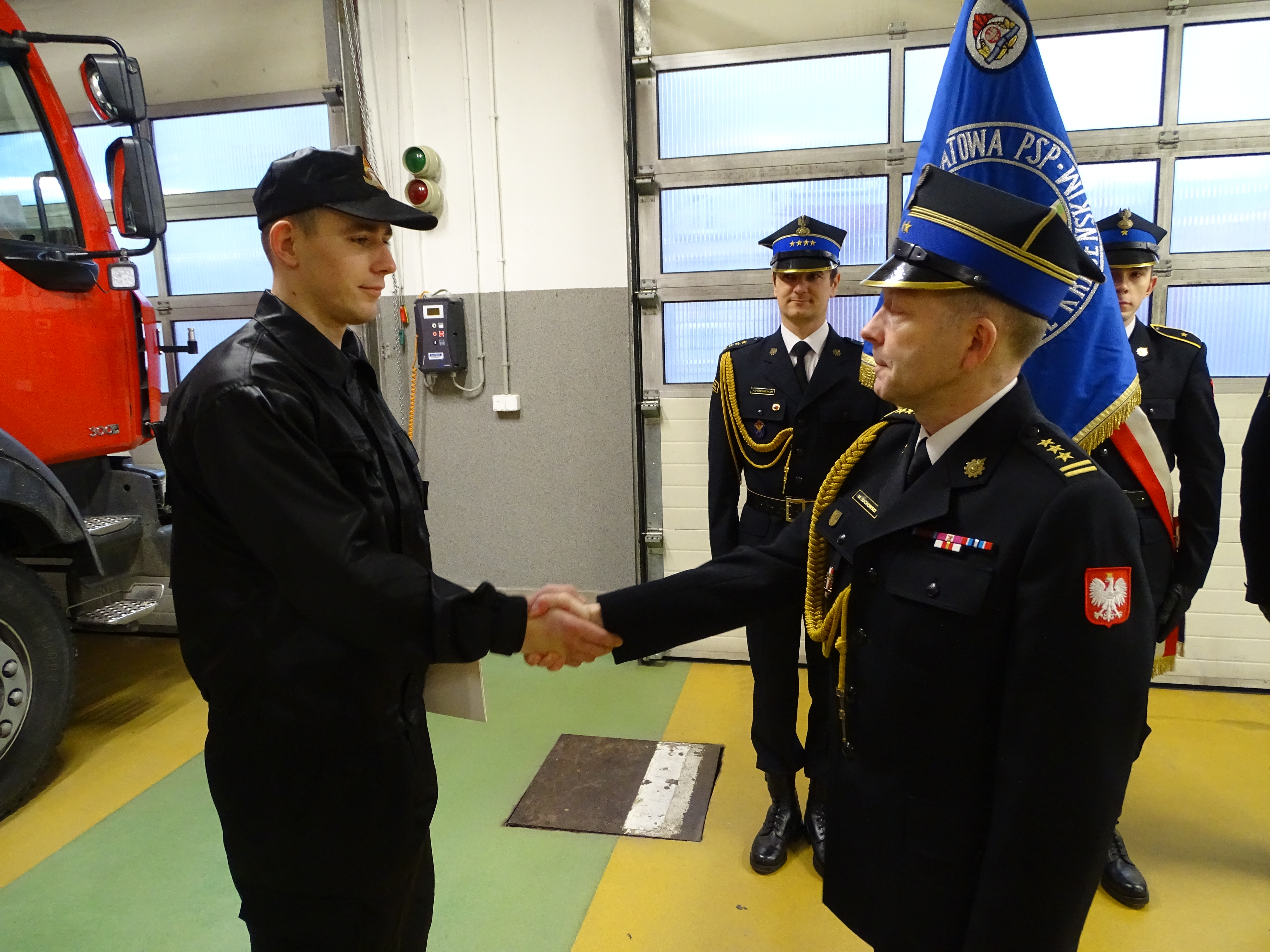 Uroczystość była także okazją do wręczenia decyzji o mianowaniu na stanowisko służbowe ratownik kierowca, które otrzymał starszy strażak Piotr Sękowski.