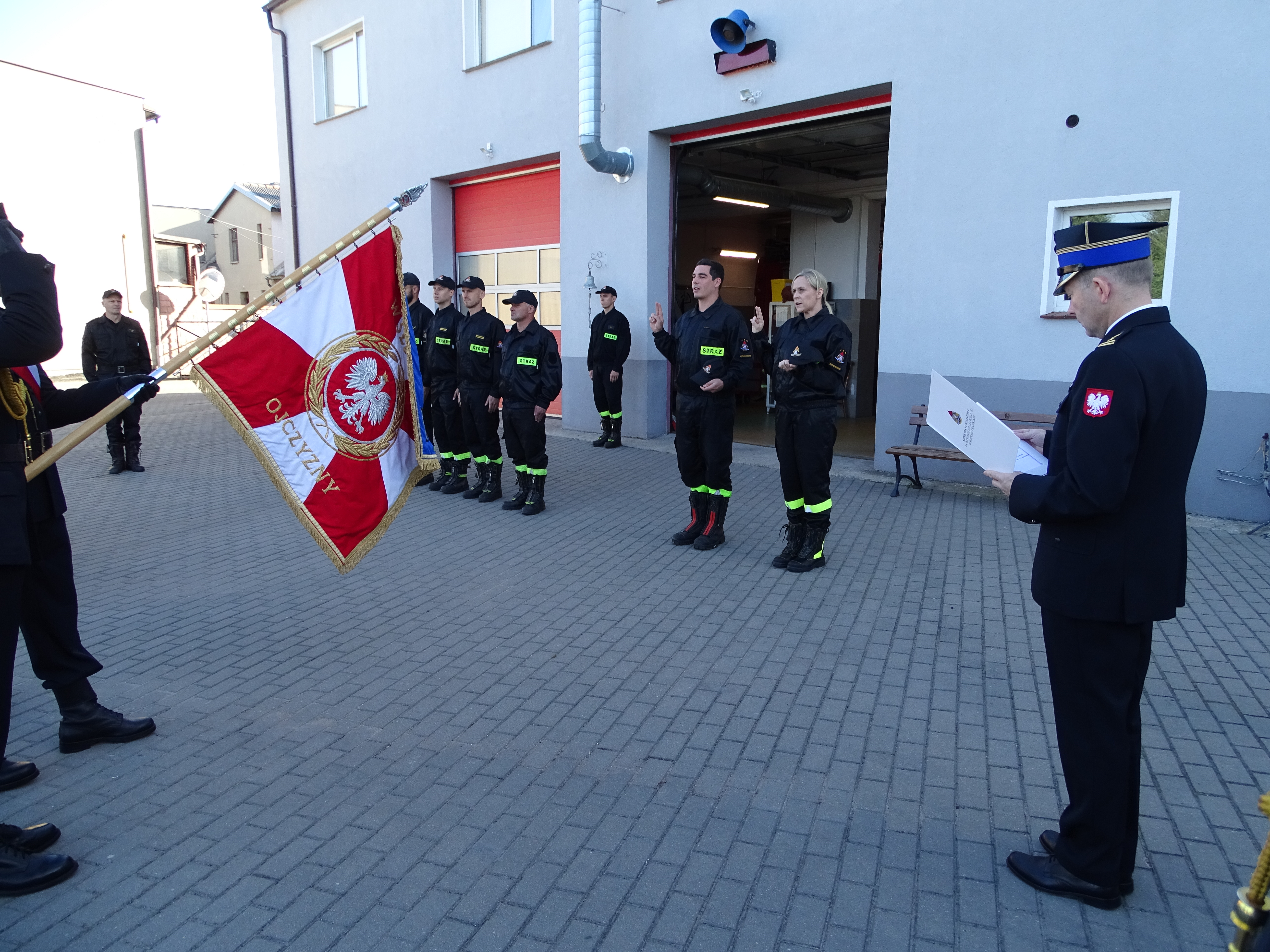 przysięgi odczytał Komendant Powiatowy st. bryg. Maciej Suchomski, który pogratulował młodym strażakom i powitał w szeregach Państwowej Straży Pożarnej..