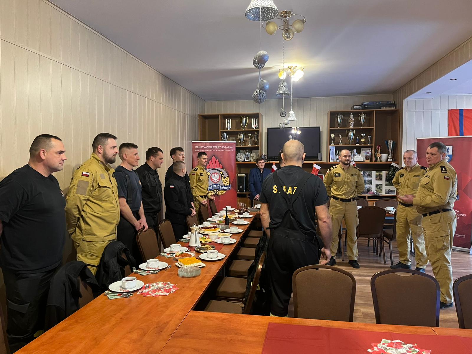 Dnia 23.12.2025 w świetlicy Ochotniczej Straży Pożarnej odbyło się spotkanie wigilijne funkcjonariuszy Państwowej Straży Pożarnej w Sępólnie Krajeńskim. Wigilia w Państwowej Straży Pożarnej to wydarzenie o szczególnym charakterze. Łączy ono w sobie głęboką polską tradycję i podniosły ceremoniał. To także czas wspólnego posiłku, łamania się opłatkiem i składanía życzeń w gronie współpracowników. Na wigilijnym stole zagościły tradycyjne potrawy; barszcz z pasztecikami, pierogi z kapustą i grzybami, karp, a także różnego rodzaju ciasta. Mimo świątecznej atmosfery, strażacy pozostają w pełnej gotowości bojowej. Uroczystość która została przerwana dźwiękiem alarmu została dokończona po powrocie zastępów do komendy.