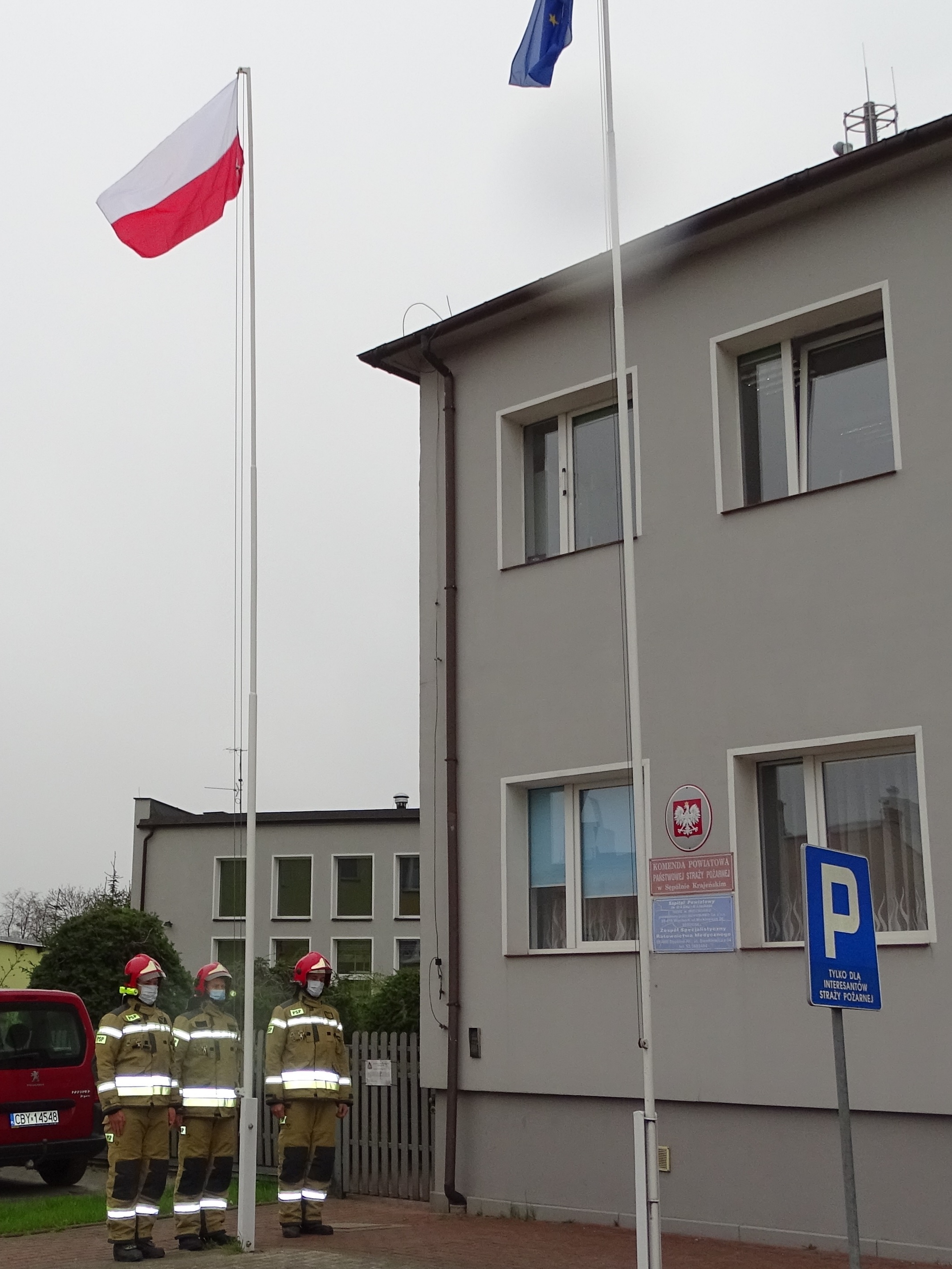W dniu 2 maja 2021 roku przed siedzibą Komendy Powiatowej Państwowej Straży Pożarnej w Sępólnie Krajeńskim podczas zmiany służbowej dokonano uroczystego podniesienia flagi państwowej. Dzień Flagi Rzeczypospolitej Polskiej został wprowadzony na mocy ustawy z dnia 20 lutego 2004 roku. Flaga państwowa to jeden z najważniejszych symboli naszej ojczyzny.