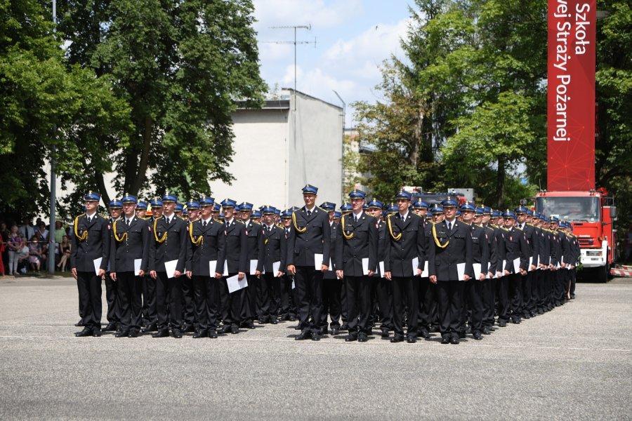Absolwentom nominację na stopień młodszego aspiranta wręczył Zastępca Komendanta Głównego Państwowej Straży Pożarnej st. bryg. Paweł Frysztak.