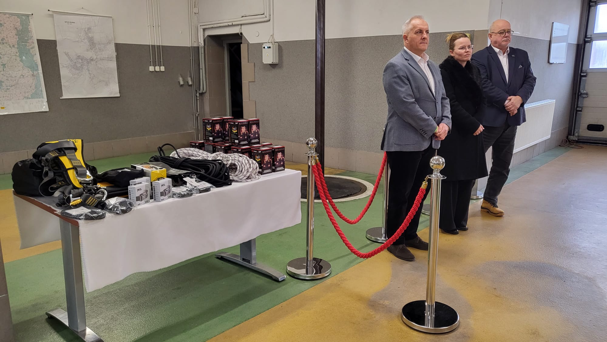 Na zakończenie Komendant Powiatowy st. bryg. Maciej Suchomski złożył podziękowania na ręce Starosty sępoleńskiego Pana Jarosława Tadycha za wsparcie w zakupie nowego sprzętu ratownictwa wysokościowego oraz ubrań podbarierowych dla załogi Komendy Powiatowej PSP w Sępólnie Krajeńskim.