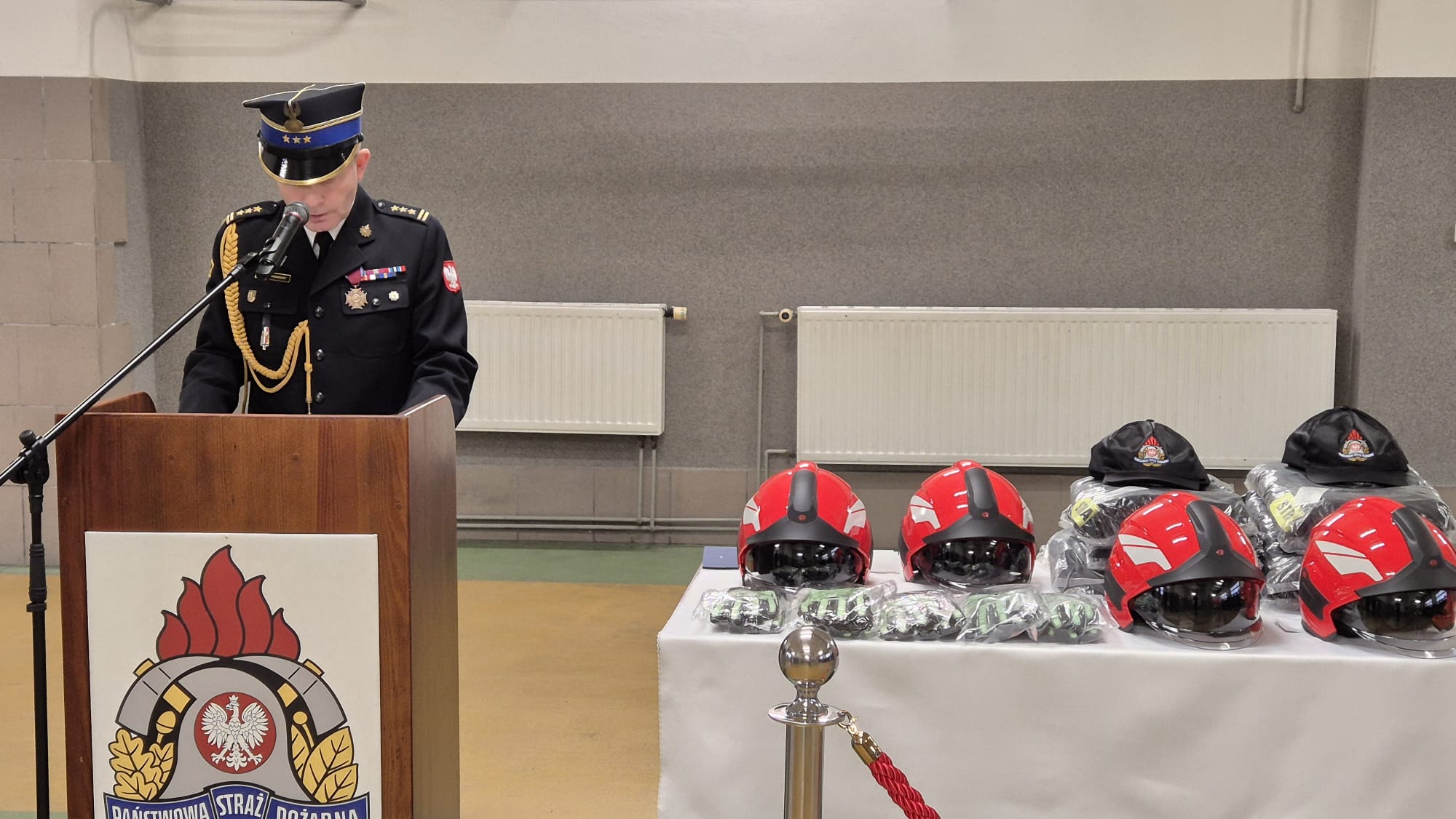 Na zakończenie zbiórki Starosta sępoleński Pan Jarosław Tadych przekazał sprzęt wyposażenia osobistego dla załogi Komendy Powiatowej PSP w Sępólnie Krajeńskim.