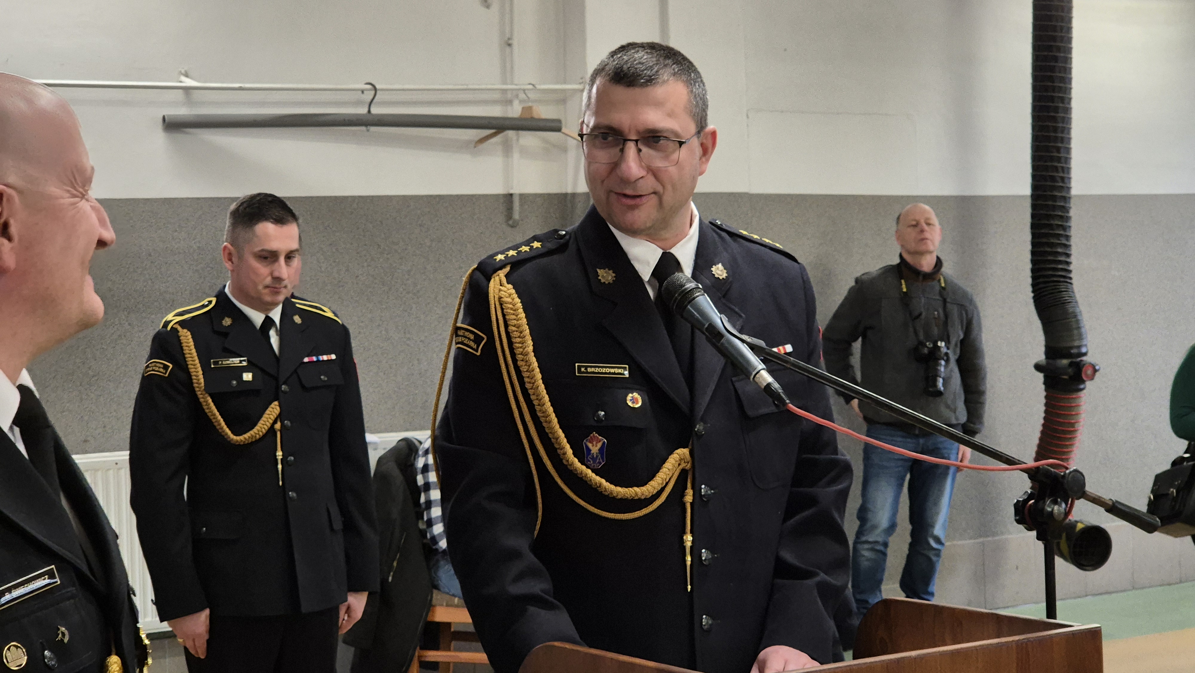 Odchodzący na zaopatrzenie emerytalne Zastępca Dowódcy Jednostki Ratowniczo-Gaśniczej st. kpt. Krzysztof Brzozowski swoją służbę w ochronie przeciwpożarowej rozpoczął 18 sierpnia 1997 roku nauką w Szkole Aspirantów Państwowej Straży Pożarnej