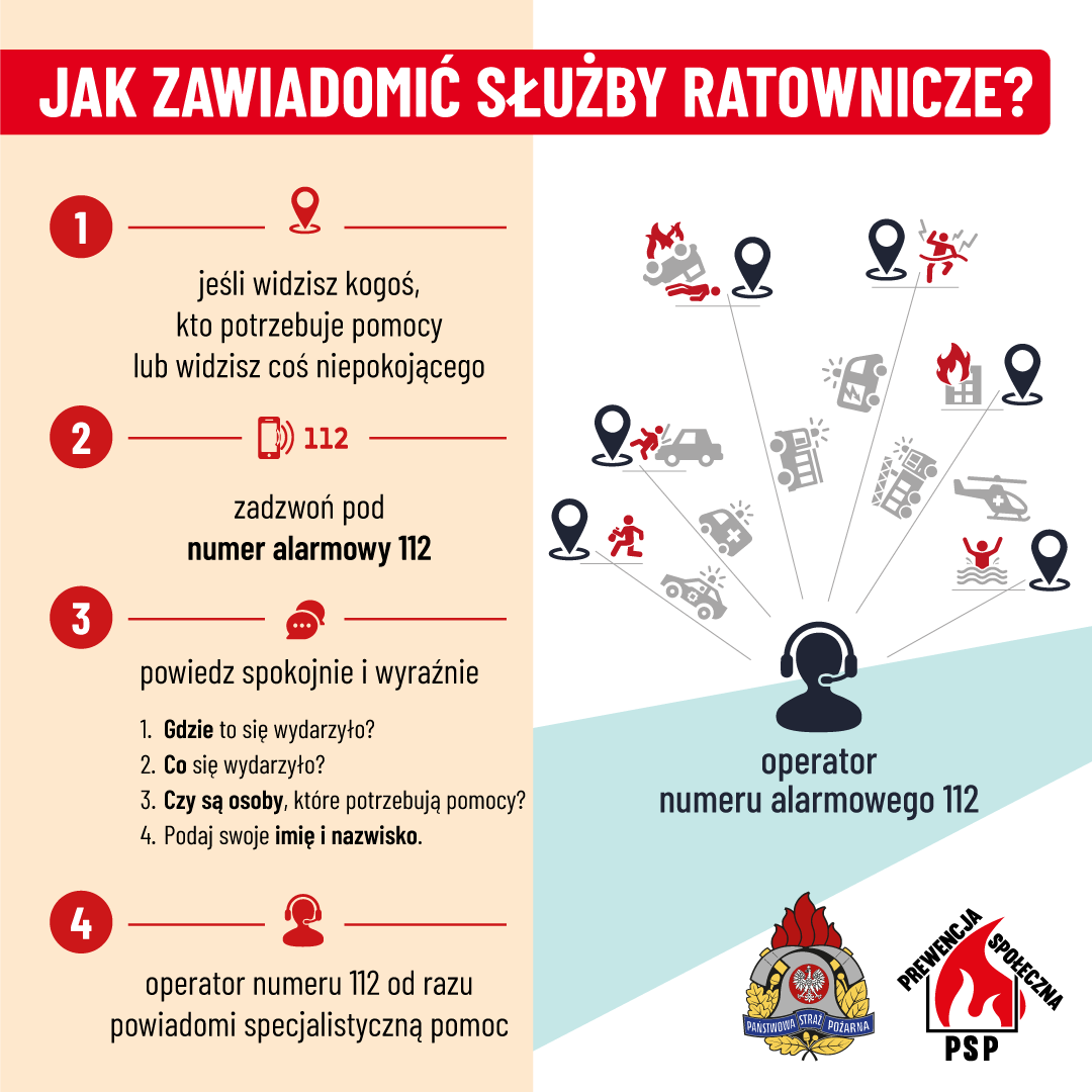 W przypadku załamania się lodu nie podawaj ręki osobie tonącej – użyj gałęzi, szalika, kija lub innego przedmiotu i natychmiast wezwij pomoc, dzwoniąc pod numer alarmowy 112.