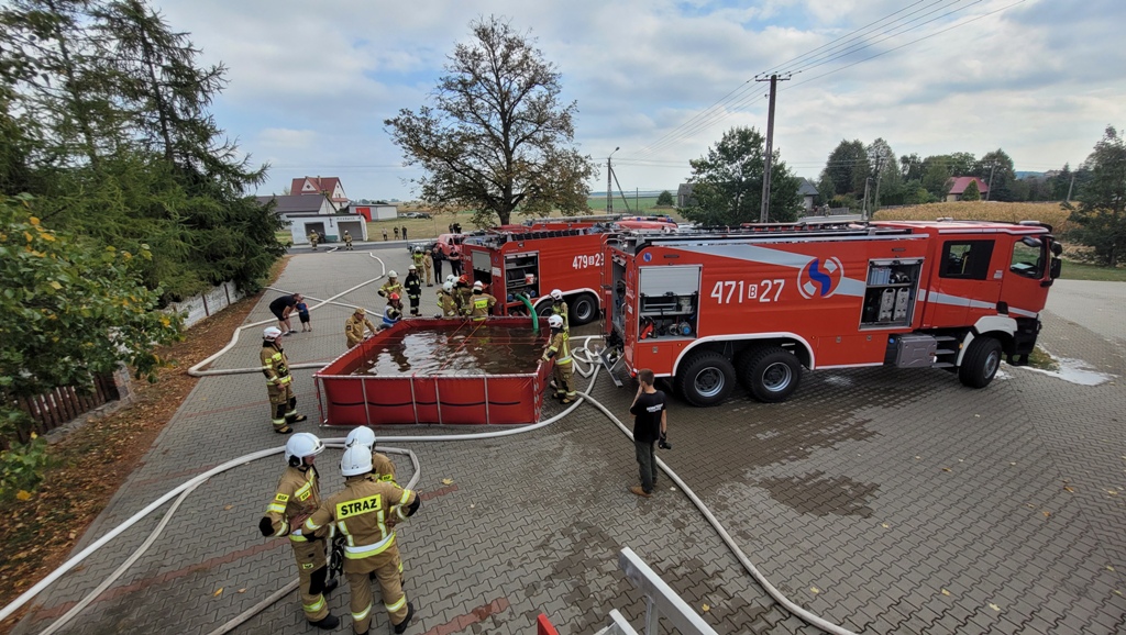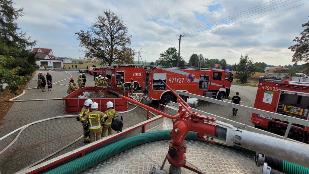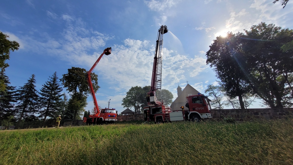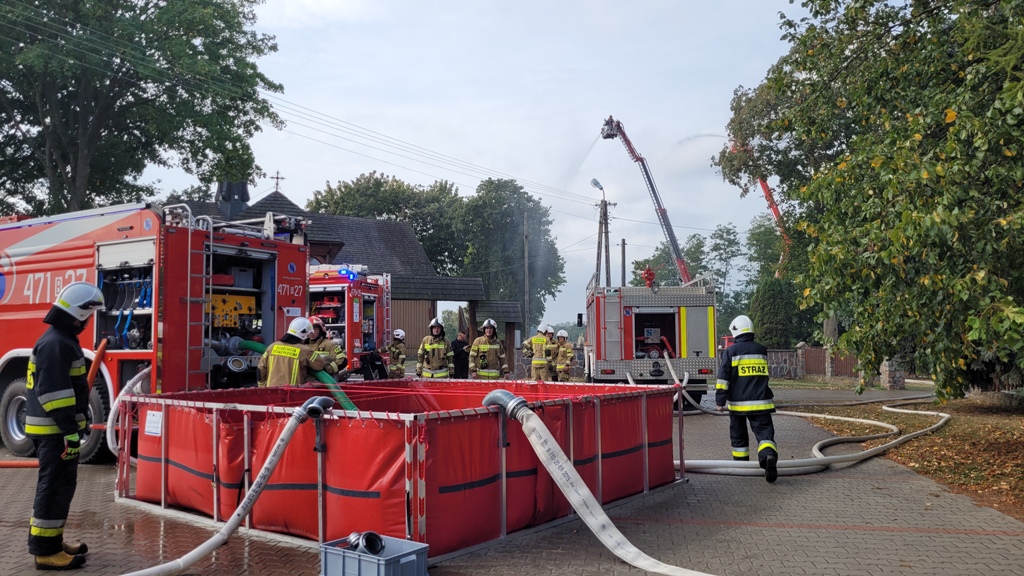 23 września br. na obiekcie drewnianego, zabytkowego kościoła parafialnego pw. św. Rocha w Miłkowicach Maćkach odbyły się ćwiczenia praktyczne, w których udział wzięły jednostki Ochotniczych Straży Pożarnych oraz JRG Siemiatycze. Manewry składały się z dwóch części. W części pierwszej- teoretycznej, przedstawiono charakterystykę obiektów sakralnych w kontekście prowadzenia działań ratowniczo-gaśniczych. Głównym założeniem drugiej części ćwiczeń był pożar budynku kościoła, w czasie którego pojawił się także epizod z zakresu ratownictwa medycznego. Ugaszenie pożaru zabytkowego kościoła okazało się utrudnionym zadaniem dla strażaków ze względu na wąską bramę, przez którą samochody pożarnicze, a w szczególności samochody specjalne z podnośnikiem hydraulicznym, nie mogły przejechać. Dodatkowo teren kościoła otoczony jest kamiennym murem. W celu zapewnienia ciągłości podawania wody, zbudowano magistralę zasilającą ze stawu w m. Miłkowice Paszki do zbiornika przenośnego- długość linii zasilającej 820 metrów i zastosowano system dostarczania wody poprzez przetłaczanie.