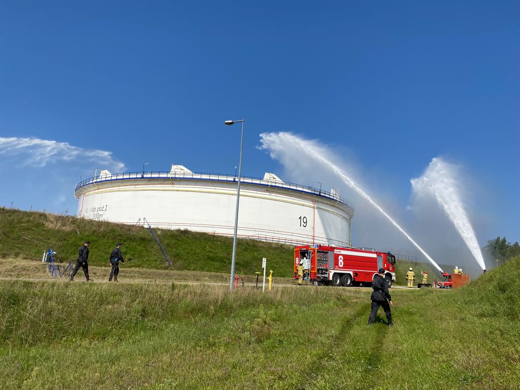 Ponad 32 strażaków oraz10 pojazdów gaśniczych - brało udział w ćwiczeniach na terenie Bazy Magazynowej PERN w Adamowie, które odbyły się 9 września 2021 roku. Symulowana sytuacja zakłada pożar zbiornika z ropą naftową o pojemności 50 tys. m3.