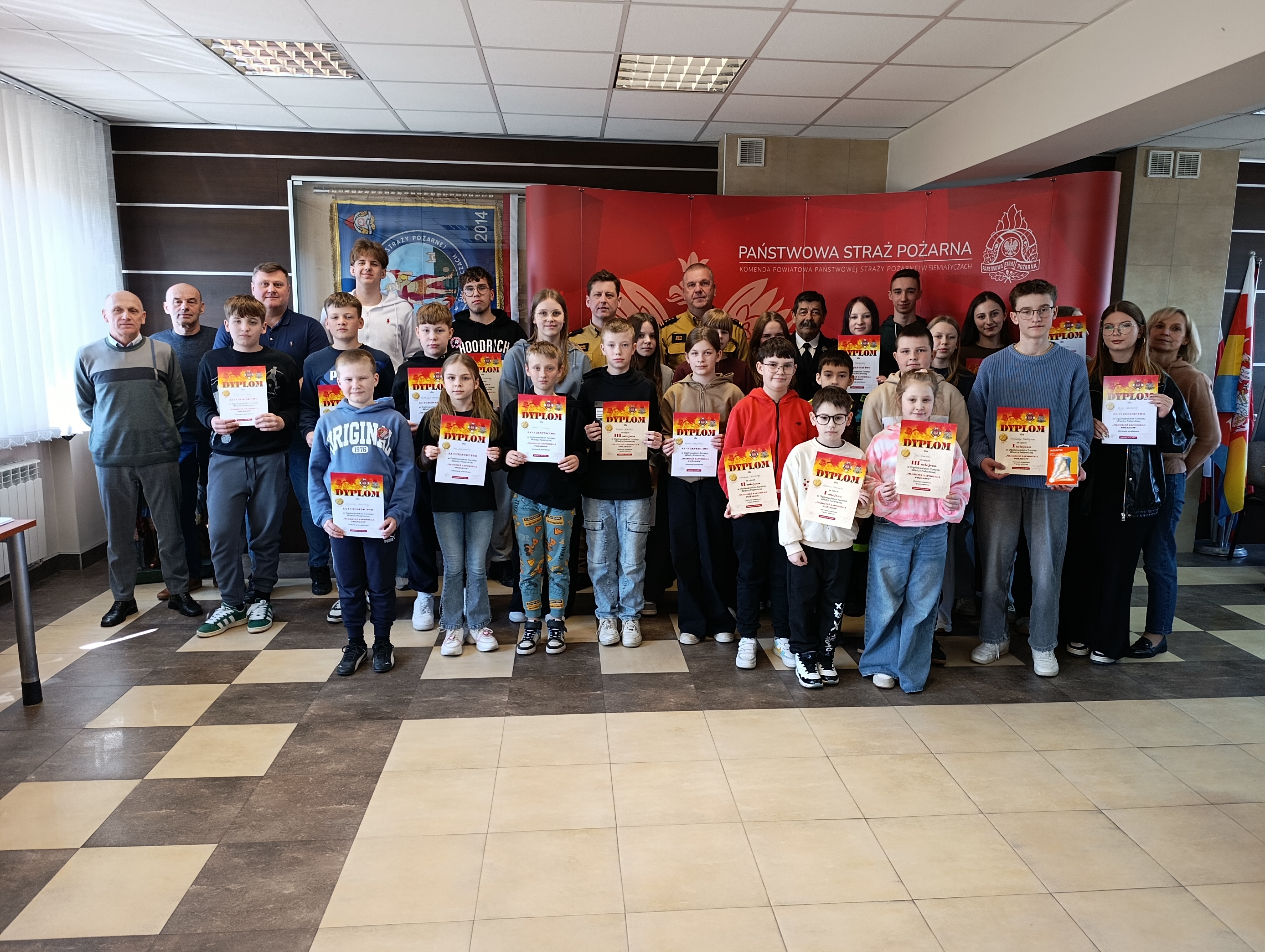 W czwartek dnia 16 kwietnia 2026 r. odbyły się eliminacje powiatowe 48 Ogólnopolskiego Turnieju Wiedzy Pożarniczej pod hasłem „Młodzież Zapobiega Pożarom”. Otwarcia turnieju dokonał st. bryg. Piotr Rybak - Komendant Powiatowy Państwowej Straży Pożarnej w Siemiatyczach. Skład komisji stanowili funkcjonariusze KP PSP w Siemiatyczach tj. mł. bryg. Tomasz Suracki oraz mł. bryg. Tomasz Czapko, a także Prezes Zarządu Oddziału Powiatowego ZOSP RP w Siemiatyczach dh Jan Okuniewski. Konkurs składał się z dwóch etapów: pisemnego (testowego) oraz ustnego, do którego zakwalifikowało się trzech uczestników z najwyższą liczbą punktów uzyskanych w teście. W turnieju wzięło łącznie 27 uczniów ze szkół podstawowych oraz ponadpodstawowych z terenu powiatu siemiatyckiego.