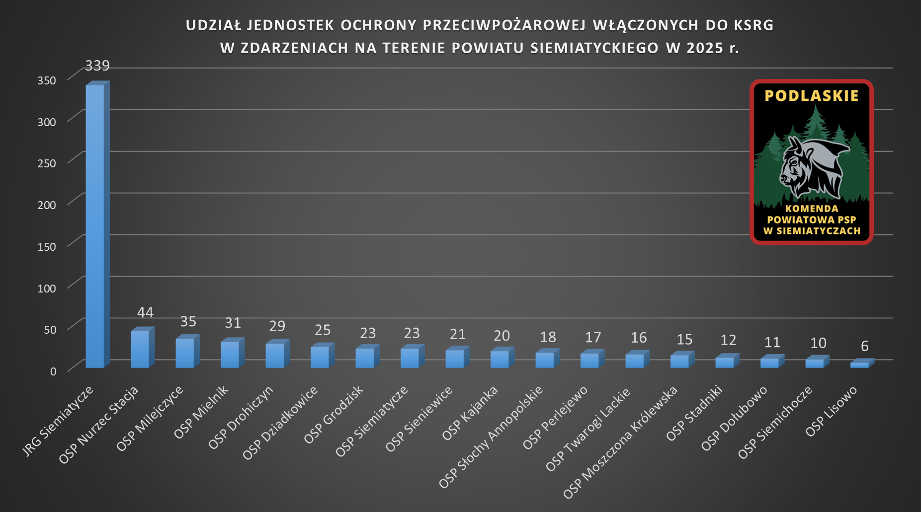 Komenda Powiatowa Państwowej Straży Pożarnej w Siemiatyczach dziękuje wszystkim strażakom PSP i OSP za zaangażowanie, profesjonalizm oraz gotowość do niesienia pomocy mieszkańcom powiatu siemiatyckiego w 2025 roku.