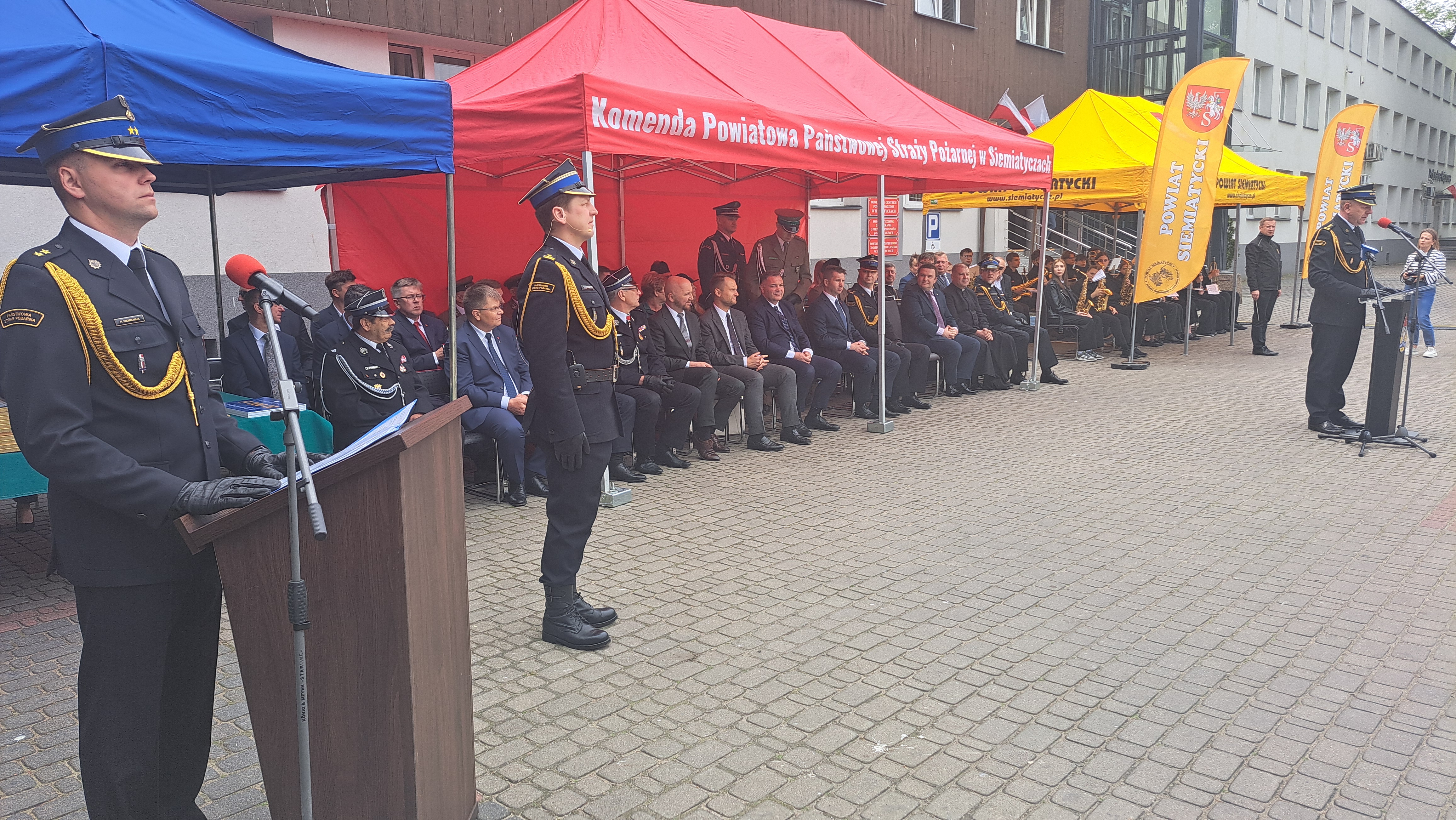 29 maja 2025 r. Komenda Powiatowa PSP w Siemiatyczach zorganizowała Powiatowe Obchody Dnia Strażaka. Wydarzenie, które odbyło się na placu przed budynkiem Starostwa Powiatowego w Siemiatyczach, zgromadziło funkcjonariuszy Państwowej Straży Pożarnej, druhów Ochotniczych Straży Pożarnych, przedstawicieli władz samorządowych oraz przybyłych mieszkańców powiatu siemiatyckiego.
