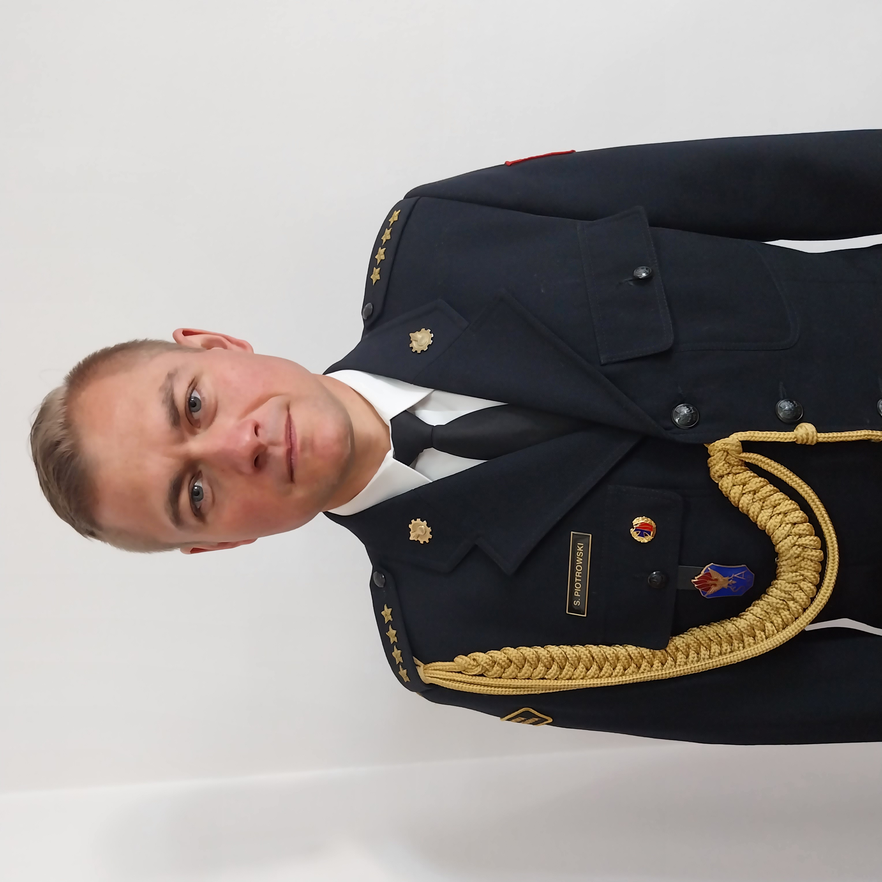 st. kpt. mgr Szymon Piotrowski z ochroną przeciwpożarową związany jest od 17 lat. Wówczas to rozpoczął służbę w szeregach Komendy Powiatowej PSP w Siemiatyczach. Doświadczenie zawodowe zdobywał pełniąc służbę w podziale bojowym JRG w Siemiatyczach w tym bezpośrednio uczestnicząc w działaniach ratowniczo-gaśniczych. W marcu 2011 roku rozpoczął służbę w systemie codziennym 8-godzinnym jako technik w sekcji kwatermistrzowsko-technicznej. Podnosząc swoje kwalifikacje służbowe w 2013 r. ukończył przeszkolenie zawodowe przygotowujące do zajmowania stanowisk oficerskich w PSP w Szkole Głównej Służby Pożarniczej w Warszawie. Następnie w 2017 roku ukończył studia podyplomowe o specjalności zamówienia publiczne na Wydziale Prawa Uniwersytetu w Białymstoku oraz Szkołę Aspirantów PSP w Krakowie uzyskując technika pożarnictwa. W drodze wyróżnienia w 2021 roku skierowany został na przeszkolenie zawodowe przygotowujące do zajmowania stanowisk związanych z kierowaniem działaniami ratowniczymi (SPK) w Szkole Głównej Służby Pożarniczej w Warszawie, które ukończył w grudniu 2022 roku. Stale pogłębiana wiedza, poparta pracowitością i zdyscyplinowaniem spowodowały systematyczny awans w hierarchii służbowej do stanowiska Kierownika Sekcji Logistyczno – Technicznej w Komendzie Powiatowej PSP w Siemiatyczach. St. kpt. Szymon Piotrowski jest funkcjonariuszem, który w każdej sytuacji w środowisku pożarniczym oraz poza nim reprezentuje wysoką kulturę osobistą, przywiązując dużą uwagę do dyscypiliny i etyki w służbie.