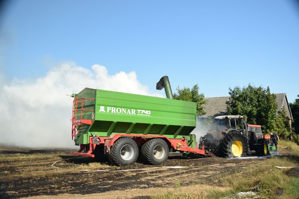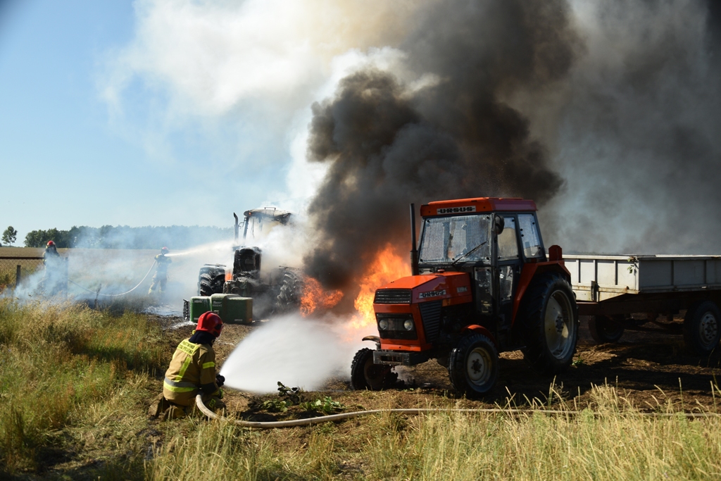 Pożar ciągnika rolniczego oraz zboża na pniu w miejscowości Wyromiejki.