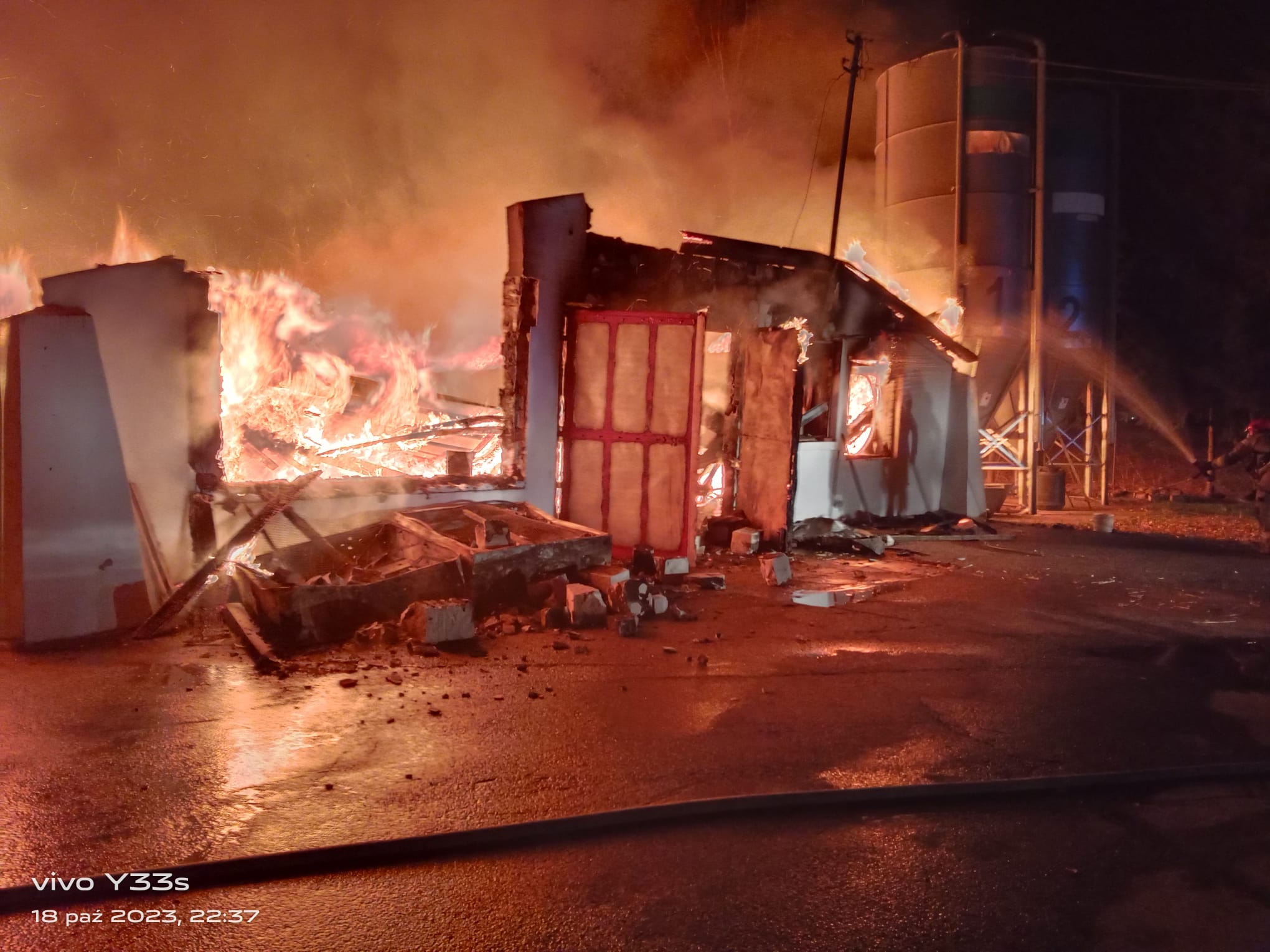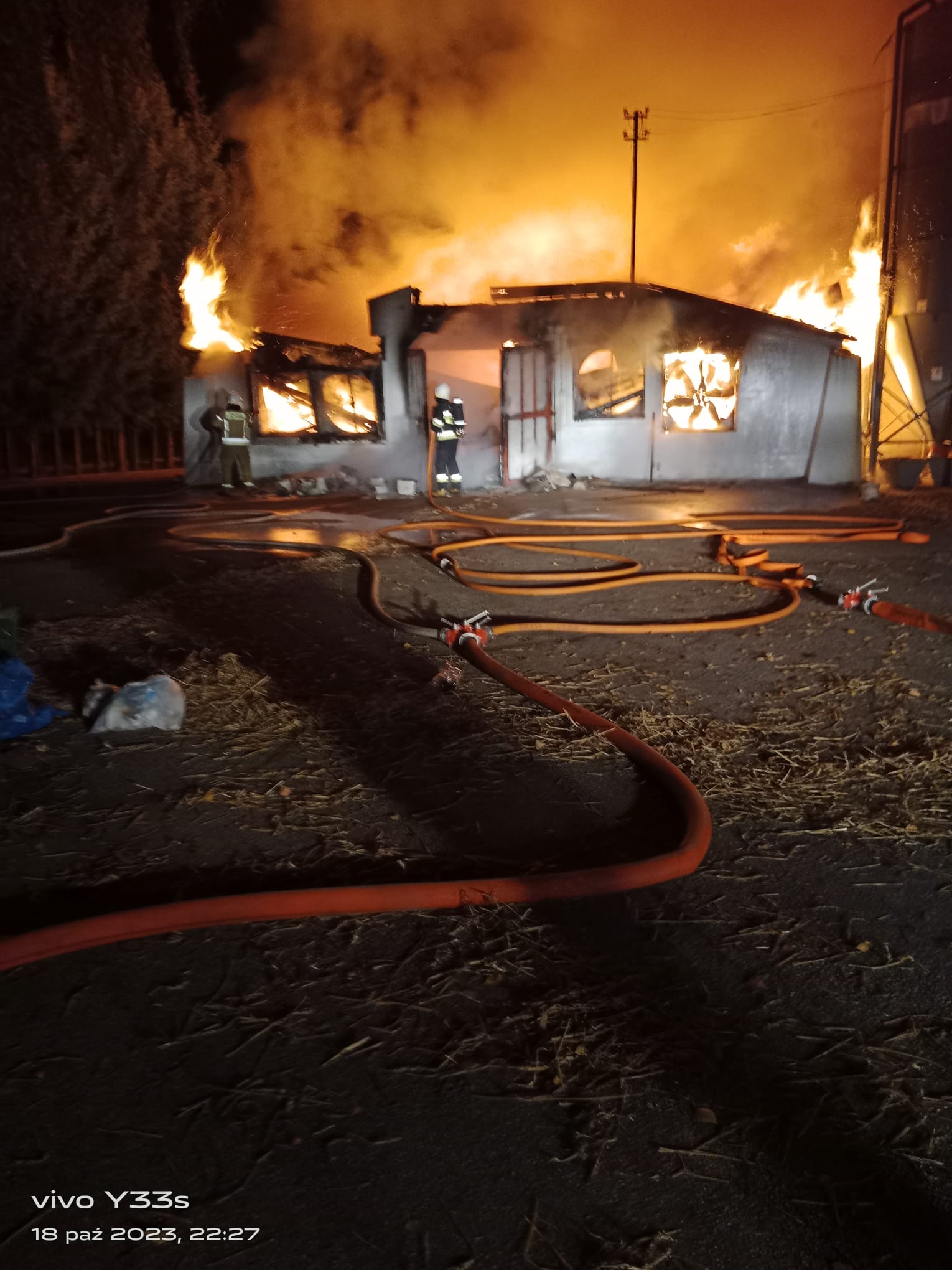 Informacja o pożarze w miejscowści Drohiczyn wpłynęła do SK KP 18 października br. o godzinie 2215. Pierwsze na miejsce zdarzenia przybyły dwa zastępy z miejscowej jednostki OSP Drohiczyn. Paliły się dwa kurniki hodowlane połączone budynkiem gospodarczym, łącznie o wymiarach 175m x 15m. Wewnątrz kurników nie było drobiu, budynek był przygotowywany do przyjęcia zwierząt. Działania gaśnicze były prowadzone w natarciu na palący sie kompleks budynków oraz w obronie zagrożonych pożarem obiektów tj.; budynku mieszkalnego, czterech zbiorników z gazem oraz garażu ze znajdującymi sie wewnątrz samochodami. Po ugaszeniu pożaru przystąpiono do prac rozbiórkowych oraz dokładnego dogaszenia wszystkich zarzewi ognia. Ostatni zastęp zakończył działania o godzinie 1343 następnego dnia.