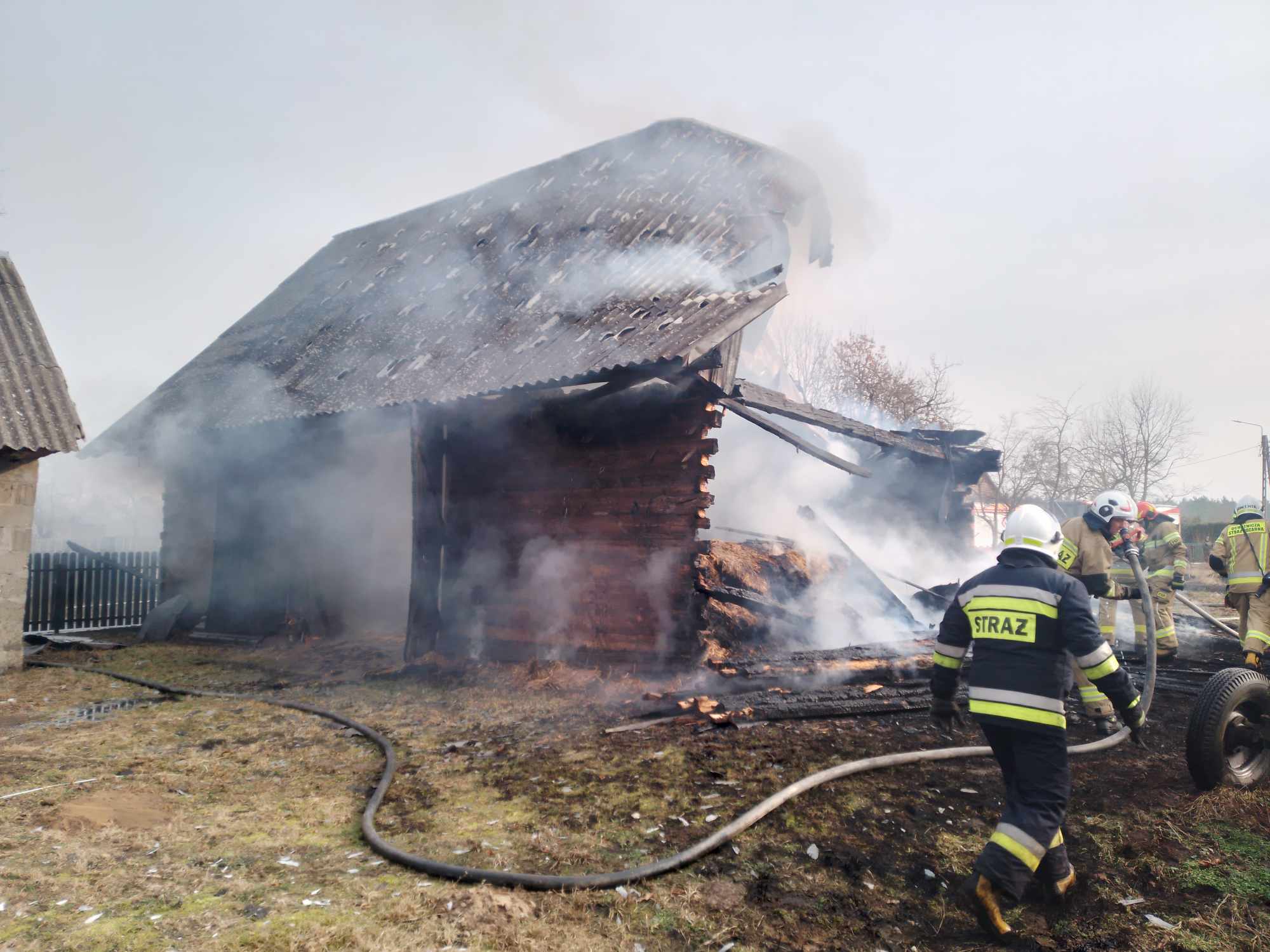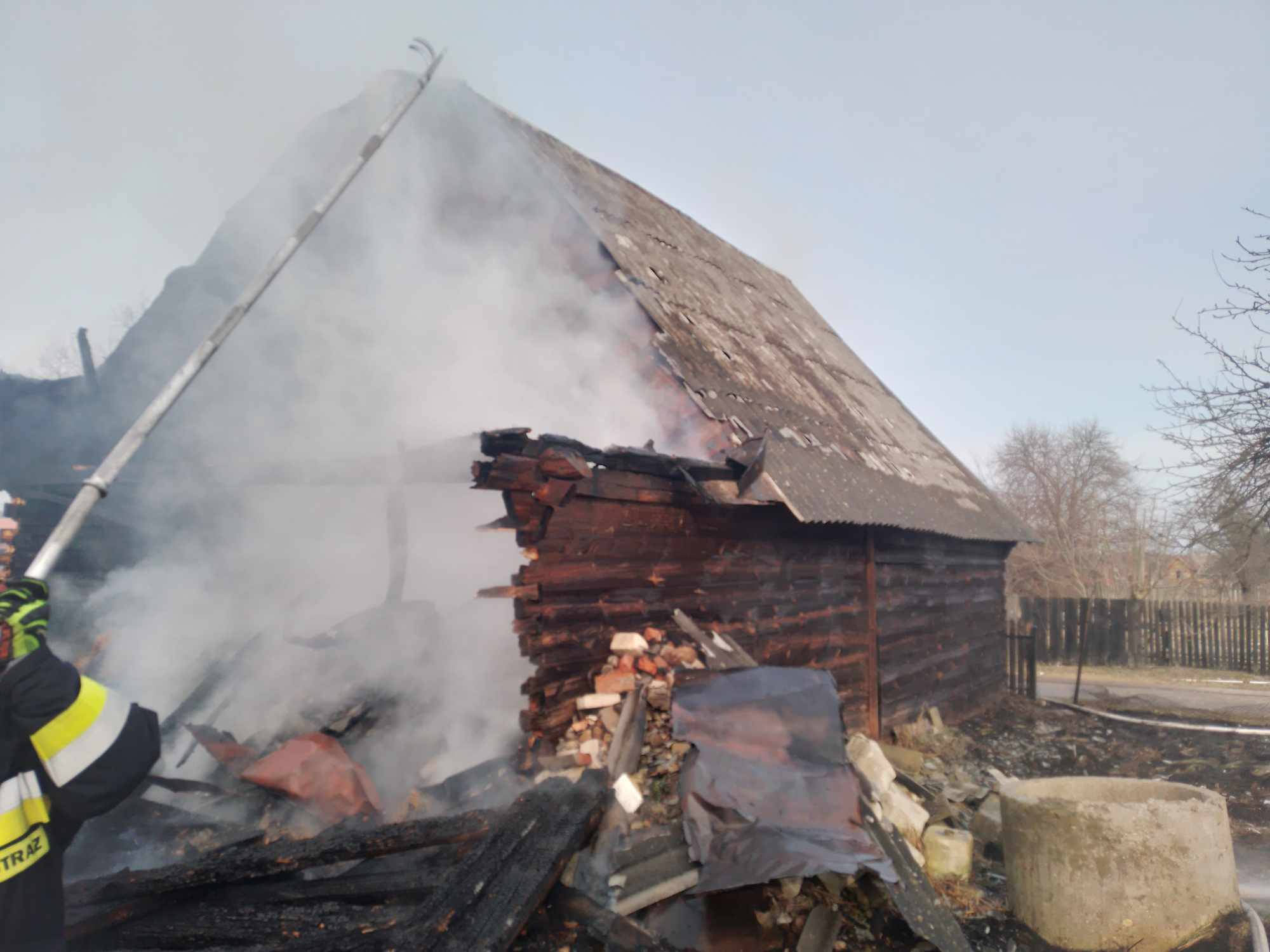 Informacja o pożarze drewnianej stodoły wpłynęła do Stanowiska Kierowania Komendanta Powiatowego w Siemiatyczach 26 lutego br. o godzinie 13.46. Jako pierwsze na miejsce zdarzenia dotarły zastępy z miejscowej jednostki OSP Milejczyce. Budynek w całości był objęty pożarem. W dalszej kolejności na miejsce pożaru dotarły zastępy z OSP Nurzec Stacja oraz JRG Siemiatycze. Po zlokalizowaniu pożaru przystąpiono do prac rozbiórkowych nadpalonej konstrukcji dachu oraz dogaszania zarzewi ognia.