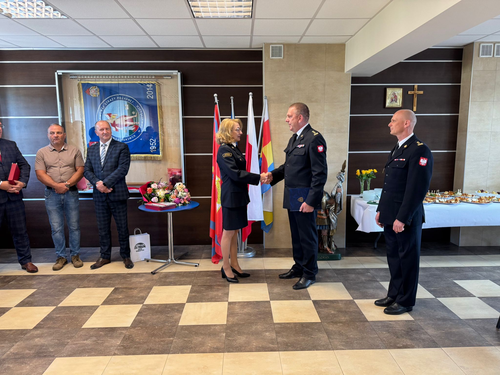 W swoim przemówieniu st. bryg. Piotr Rybak podziękował Pani st. kpt. Annie Żebrowskiej za wszystkie lata niezawodnej służby, podkreślając Jej zaangażowanie, fachowość i ogromny wkład w rozwój i funkcjonowanie Komendy. W ciepłych i pełnych uznania słowach wyraził wdzięczność nie tylko za pracę, ale również za postawę – opartą na szacunku, lojalności i uczciwości.