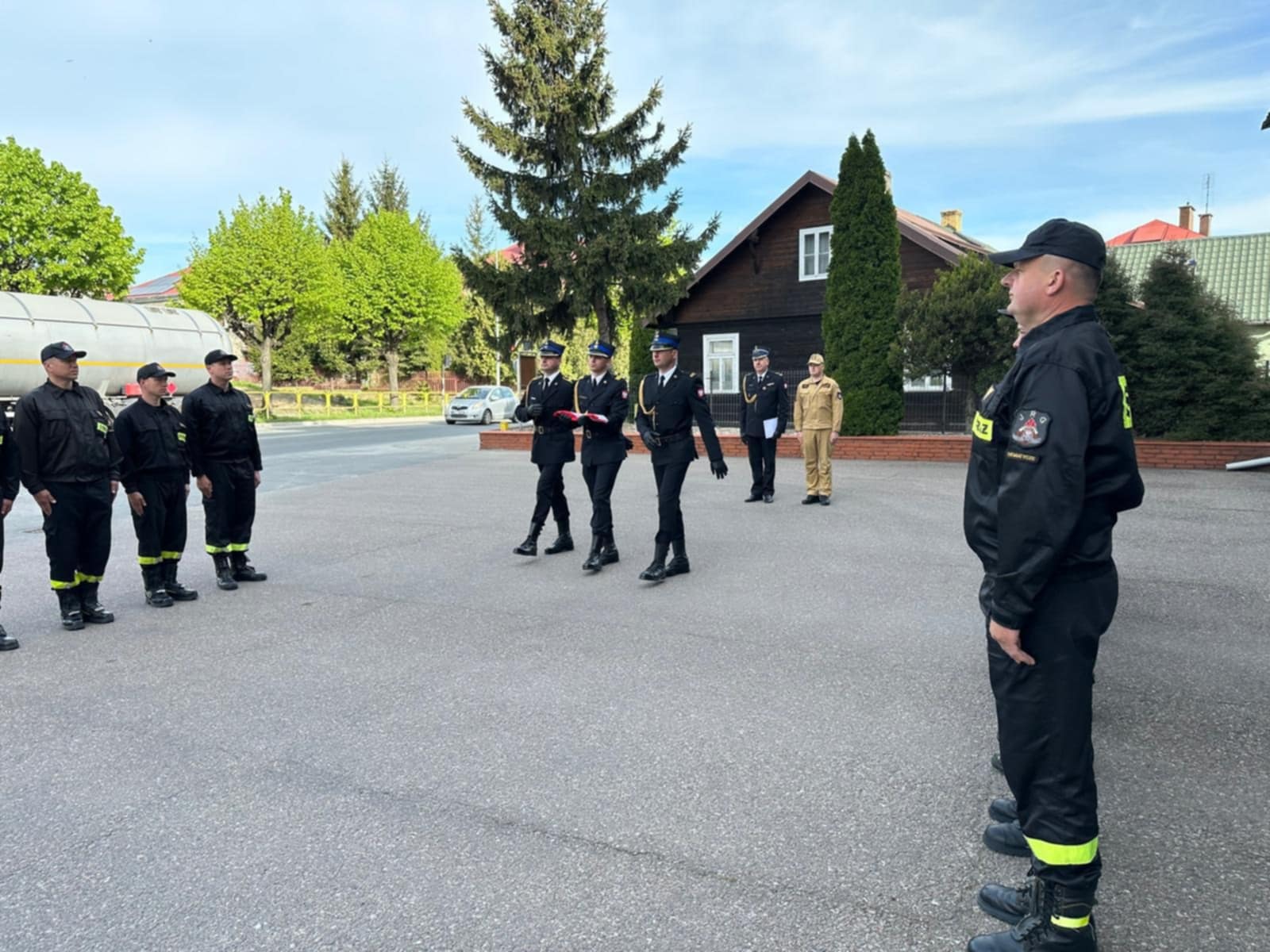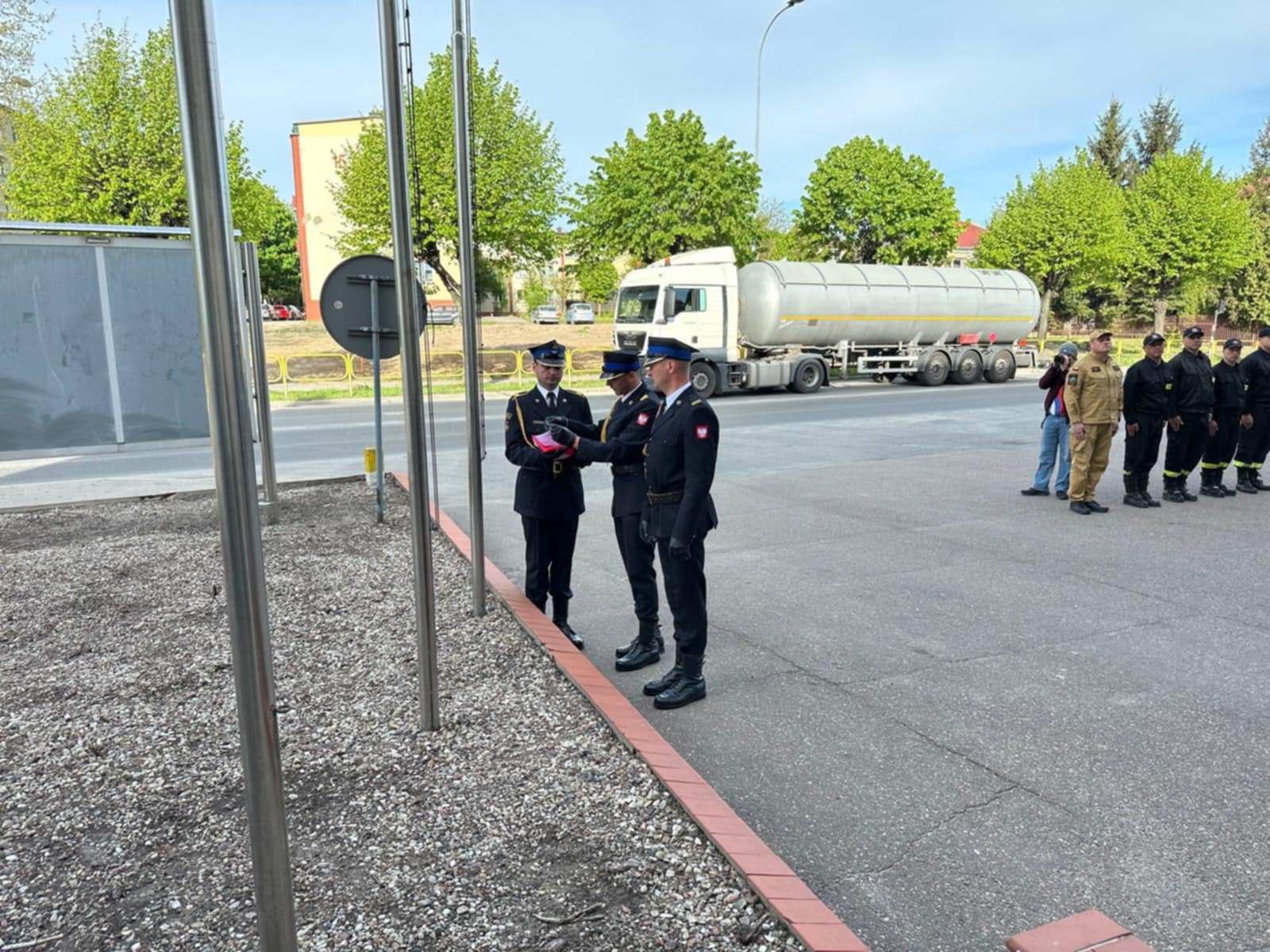 W dniu 2 maja br. na placu przed Komendą Powiatową PSP w Siemiatyczach odbyła się uroczysta zmiana służby związana z obchodami Dnia Flagi Rzeczypospolitej Polskiej. Uroczystość rozpoczęła się złożniem meldunku Komendantowi Powiatowemu PSP w Siemiatyczach, następnie odegrano hymn oraz podniesiono flagę państwową na maszt.
