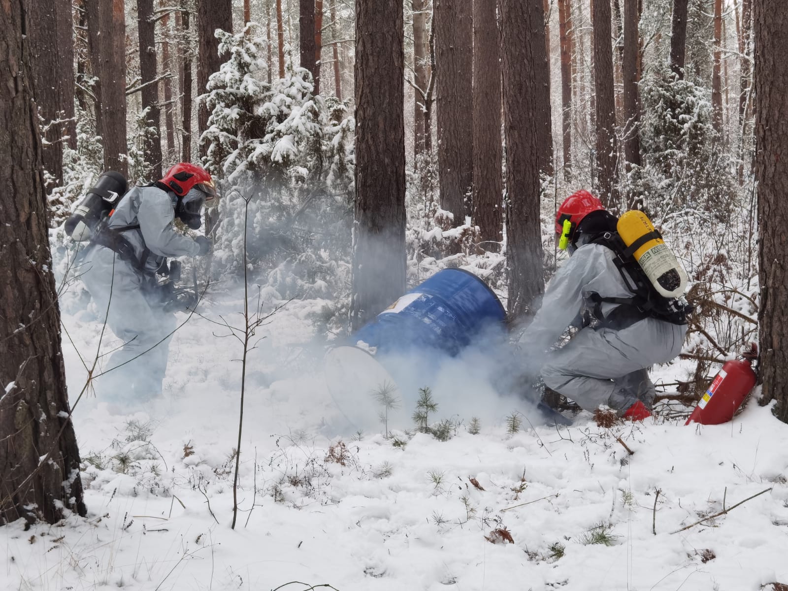 Scenariusz ćwiczeń zakładał, że w kompleksie leśnym odnaleziono beczkę z nieznaną substancją chemiczną, a mężczyzna widziany w jej pobliżu zbiegł w kierunku rzeki Bug. Zgłoszenie trafiło do dyżurnego Komendy Powiatowej Policji w Siemiatyczach, który niezwłocznie skierował na miejsce patrole. Wkrótce do działań dołączyli strażacy PSP, a następnie funkcjonariusze Straży Granicznej.