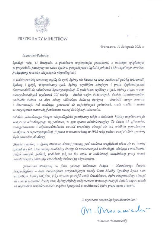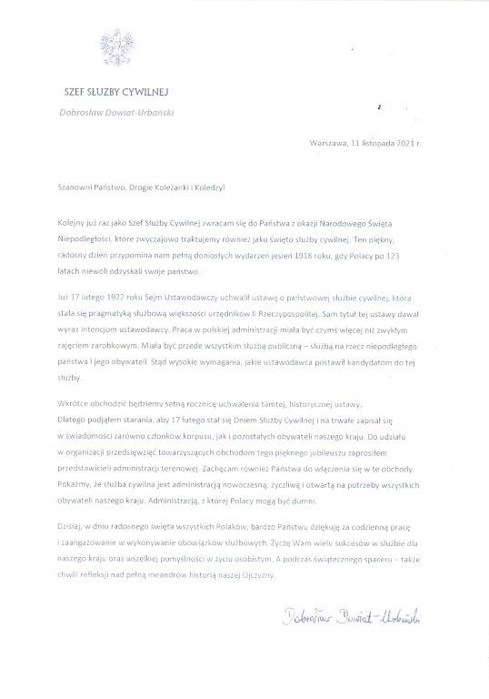 Listy z okazji Narodowego Święta Niepodległości oraz Dnia Służby Cywilnej Zdjęcia (2) Pokaż zdjęcie 1 z galerii. Pokaż zdjęcie 2 z galerii.