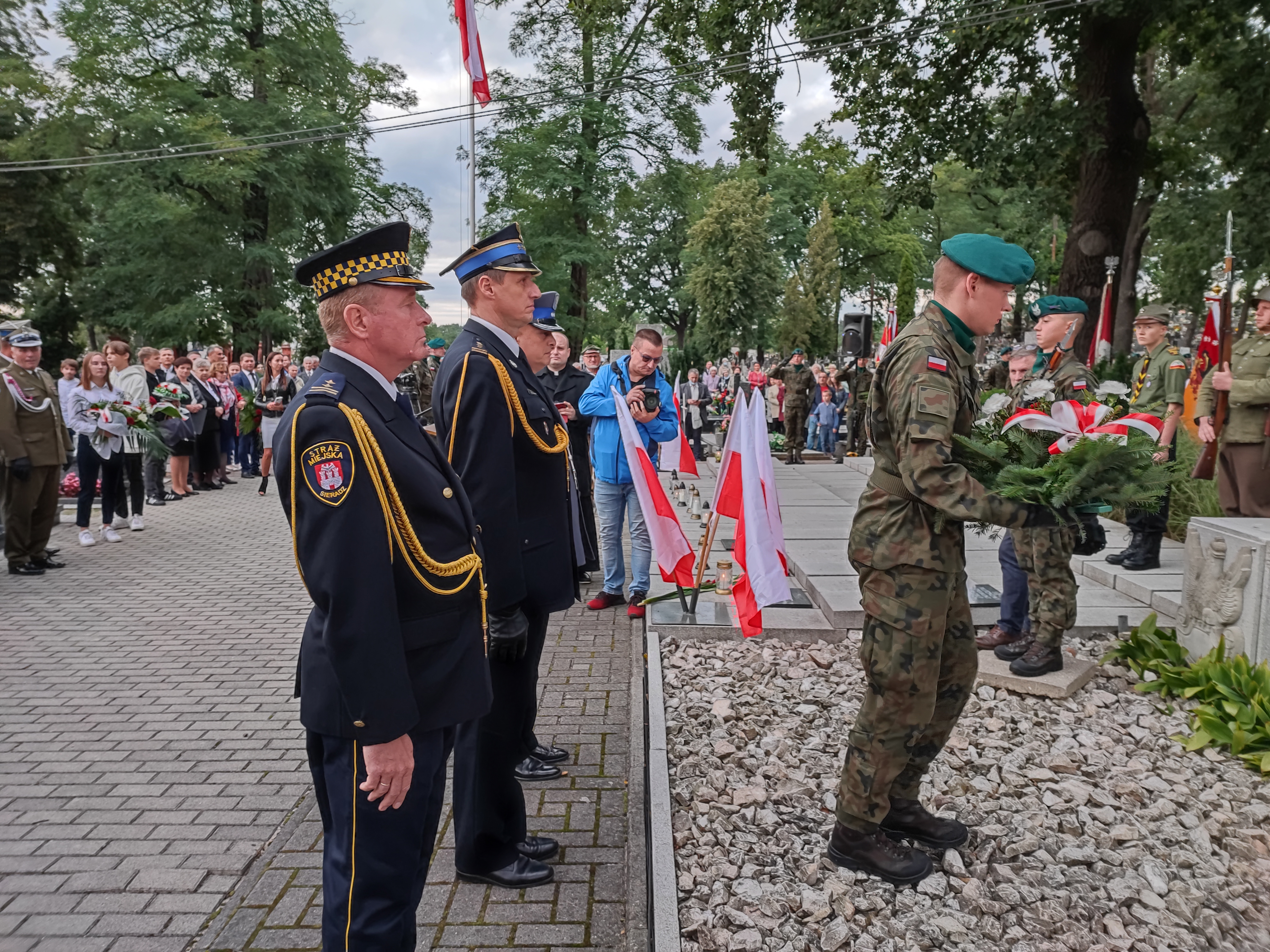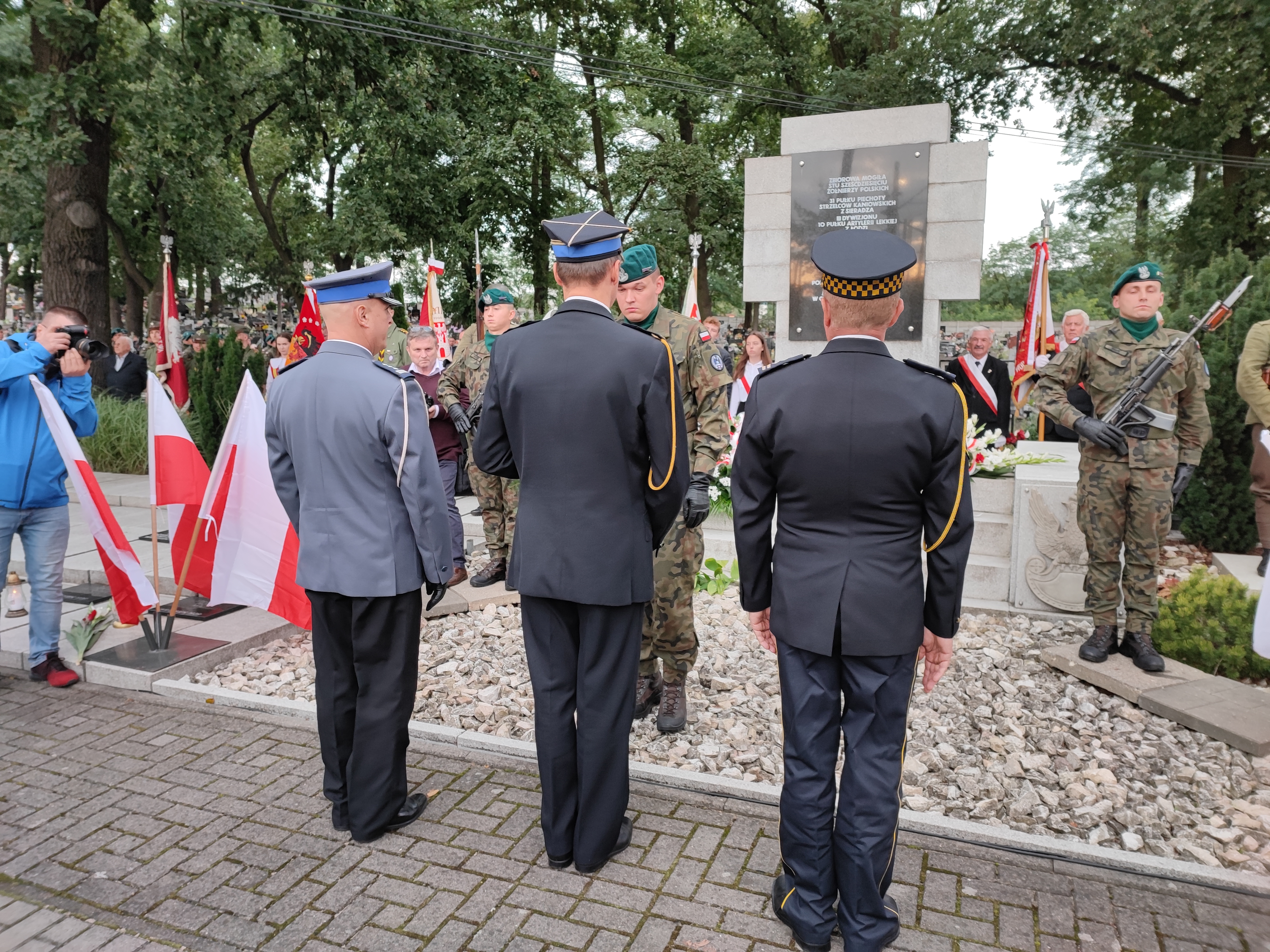 Obchody 82 rocznicy wybuchu II wojny światowej rozpoczęły się w Sieradzu uroczystą mszą w kościele Św. Wojciecha w Męce. Stamtąd uczestnicy uroczystości przeszli na miejscowy cmentarz parafialny, gdzie było okolicznościowe przemówienie prezydenta miasta Pawła Osiewały, potem Apel Pamięci i salwa, która oddała kompania honorowa wystawiona przez 15 Sieradzką Brygadę Wsparcia Dowodzenia. Poszczególne delegacje złożyły kwiaty, Komendę Powiatową Państwowej Straży Pożarnej w Sieradzu reprezentował st. bryg. mgr inż. Radosław Jadwiszczak. Na koniec uroczystości odsłonięto tablice, która upamiętniają dwóch bezimiennych dotąd polskich żołnierzy września 1939r., a pochowanych tuż przy głównej mogile żołnierskiej. Jak ustalili Wojciech Józefiak, Robert Kielek i Maciej Milak z grupy Zwiadowcy Pól Bitewnych 1939r. - ci żołnierze to kapral rezerwy Kazimierz Śliwiński i starszy strzelec Józef Broniarczyk z 2 kompanii 7 batalionu karabinów maszynowych i broni towarzyszących ze Słonimia.