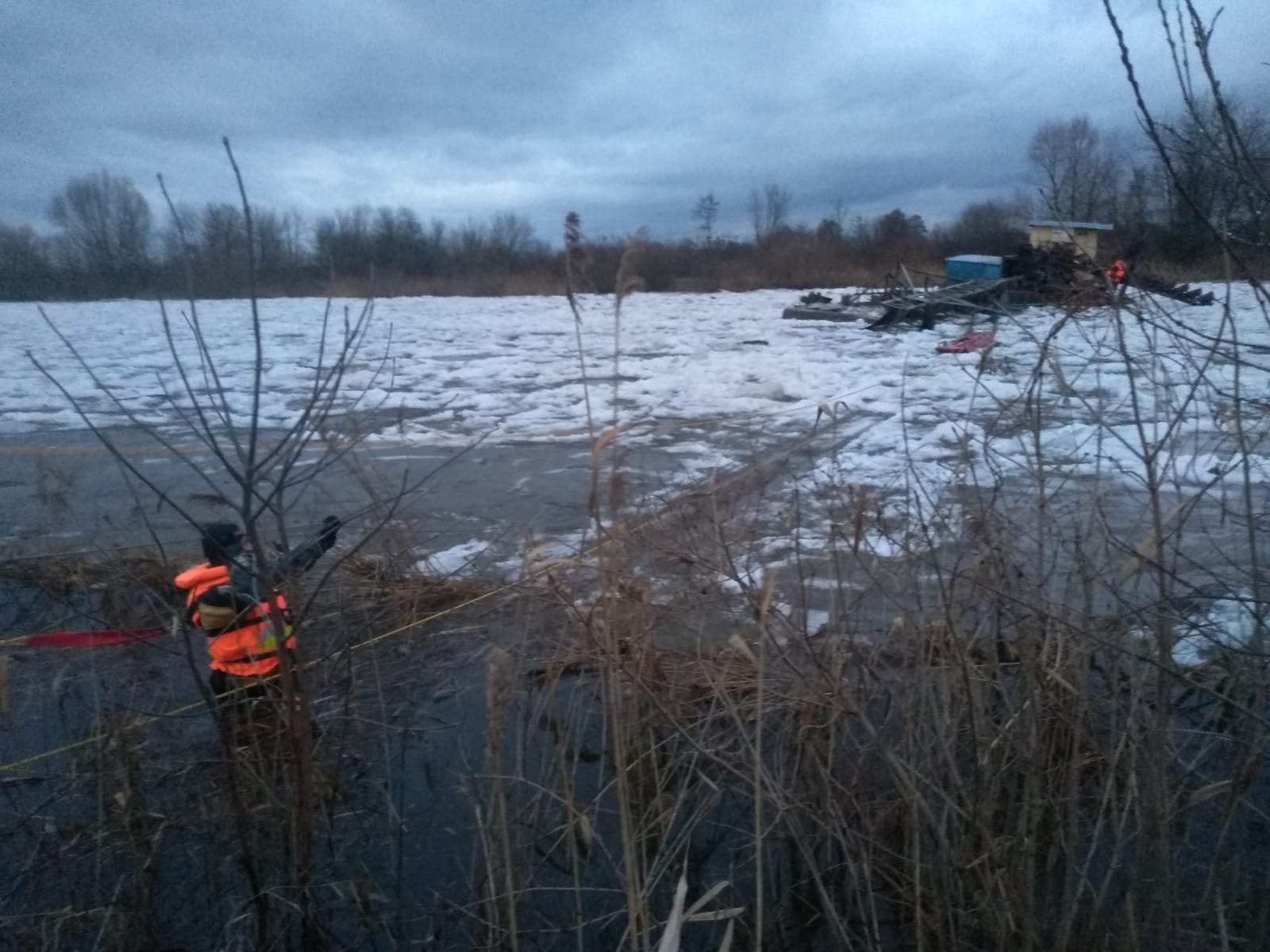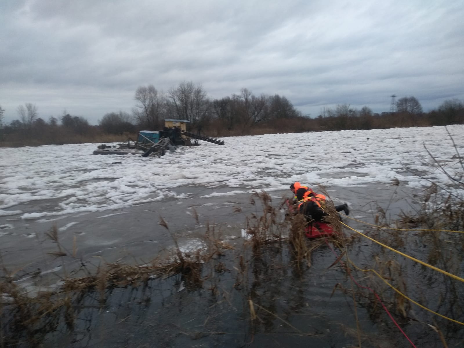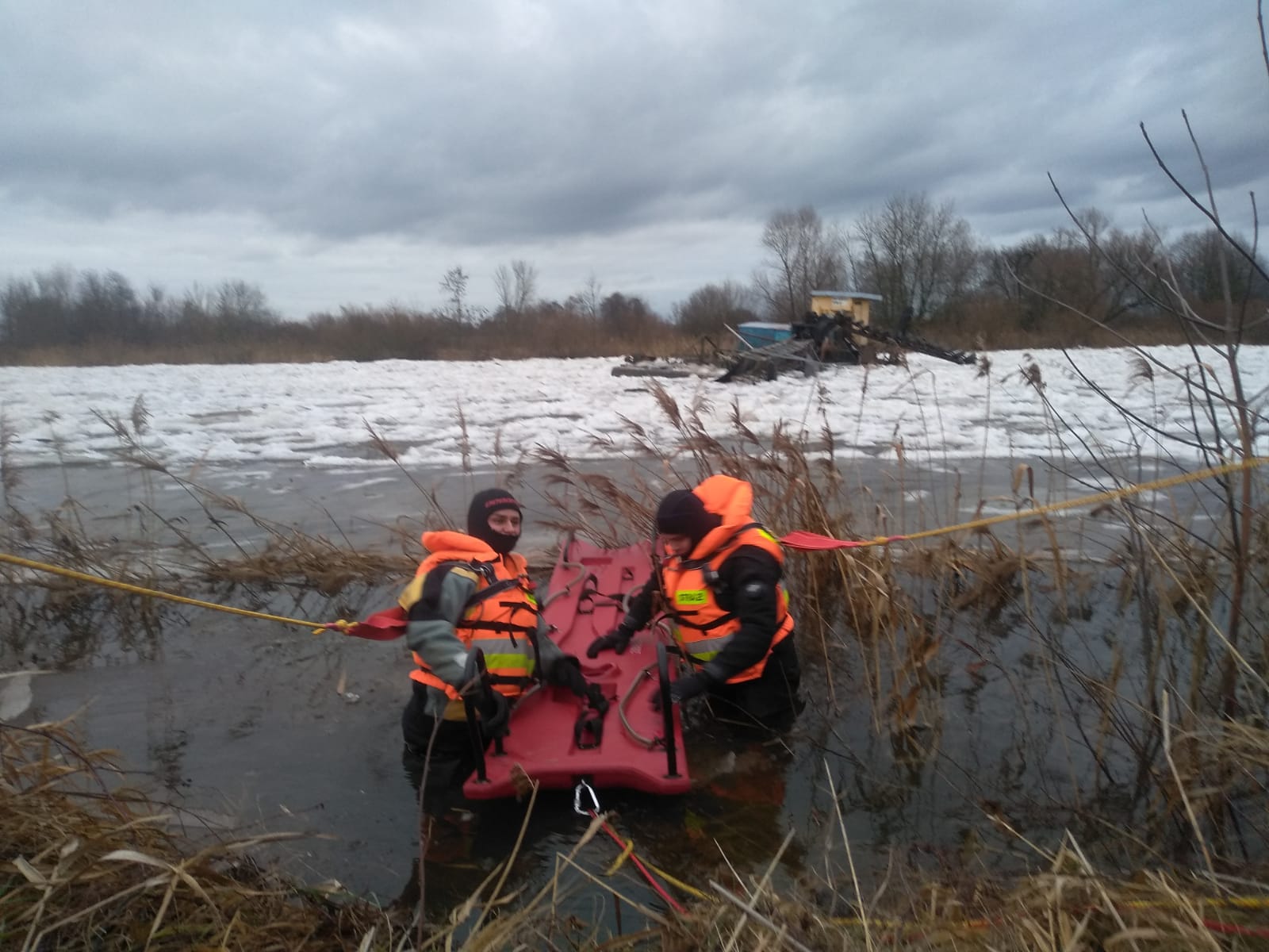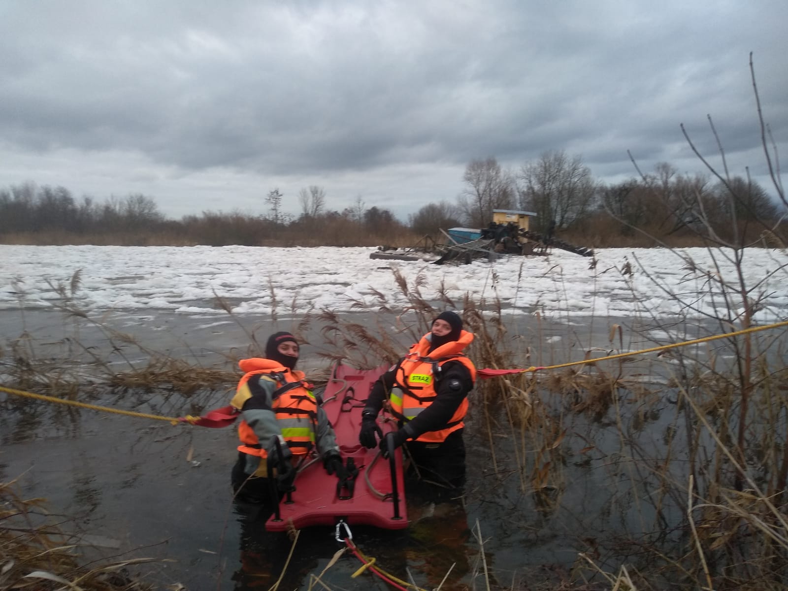 W dniu 31 stycznia 2021 roku o godzinie 11:47 do Stanowiska Kierowania Komendanta Powiatowego Państwowej Straży Pożarnej w Sieradzu wpłynęło zgłoszenie o dryfującej barce na rzece Warta. Barka służyła do poboru piasku z dna rzeki i zacumowana była w Sieradzu, przed mostem kolejowym. Pod naporem kry lodowej i zwiększonego poziomu wody zerwały się liny cumownicze i barka zaczęła dryfować. Między Dzigorzewem a Biskupicami barka zatrzymała się na zatorze lodowym, na środku rzeki. Strażacy JRG KP PSP w Sieradzu przy wsparciu OSP w KSRG Biskupice podjęli próbę ściągnięcia barki do brzegu i zacumowania. Największą trudnością było dotarcie do barki i zaczepienie lin. Utrudnieniem były spękane kry lodowe i silny nurt. Istniało niebezpieczeństwo, że dryfująca barka może spowodować uszkodzenie elementów konstrukcyjnych mostu na rzece Warcie w miejscowości Biskupice. Przy pomocy sań lodowych i asekuracji z brzegu udało się dostać na wrak barki i zaczepić liny stalowe. Następnie z pomocą ciągników rolniczych odholowano barkę do brzegu i zacumowano do przybrzeżnych drzew. Waga barki to około 12 ton. Działania straży zakończyły się o godzinie 17:04.