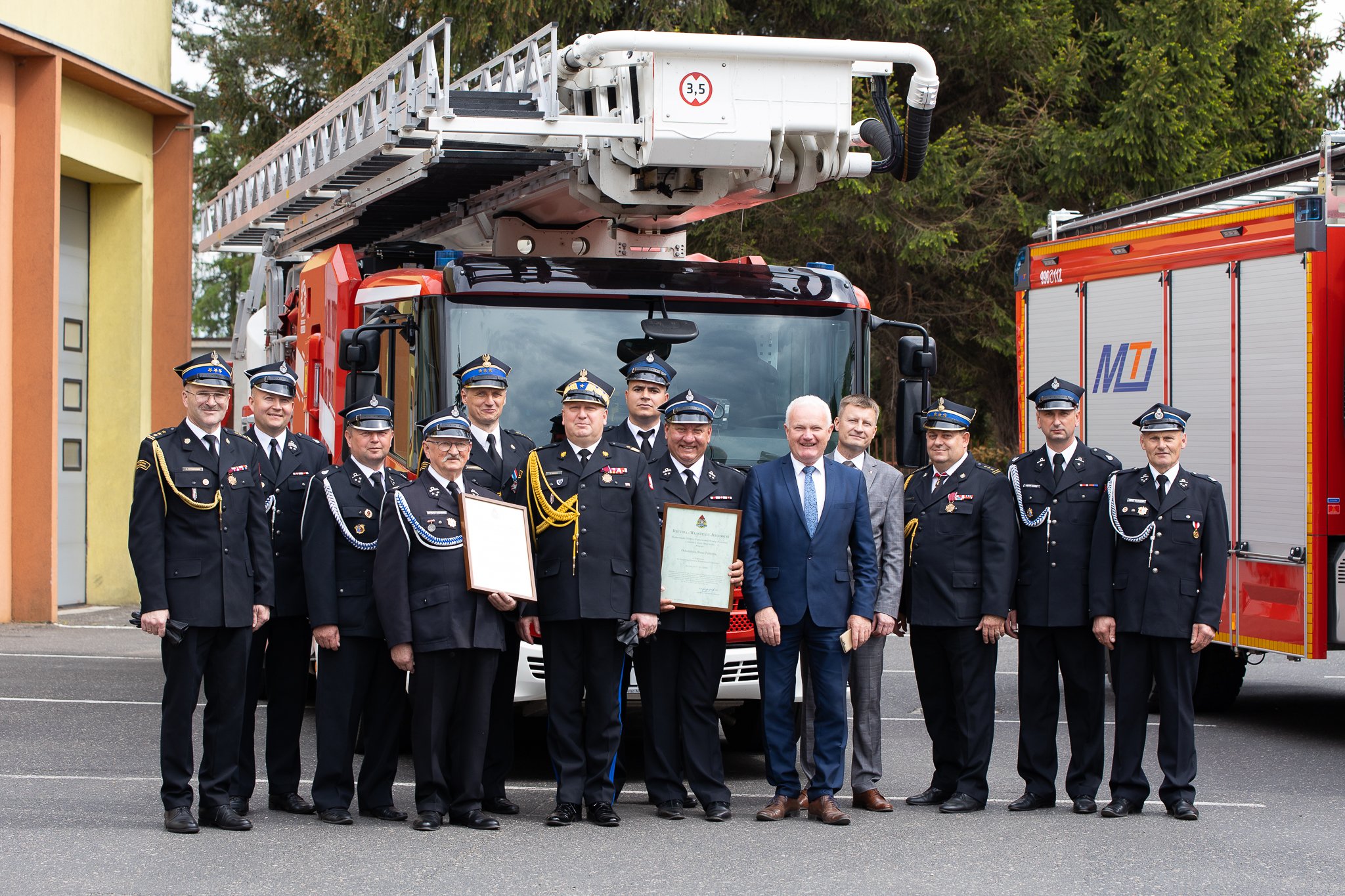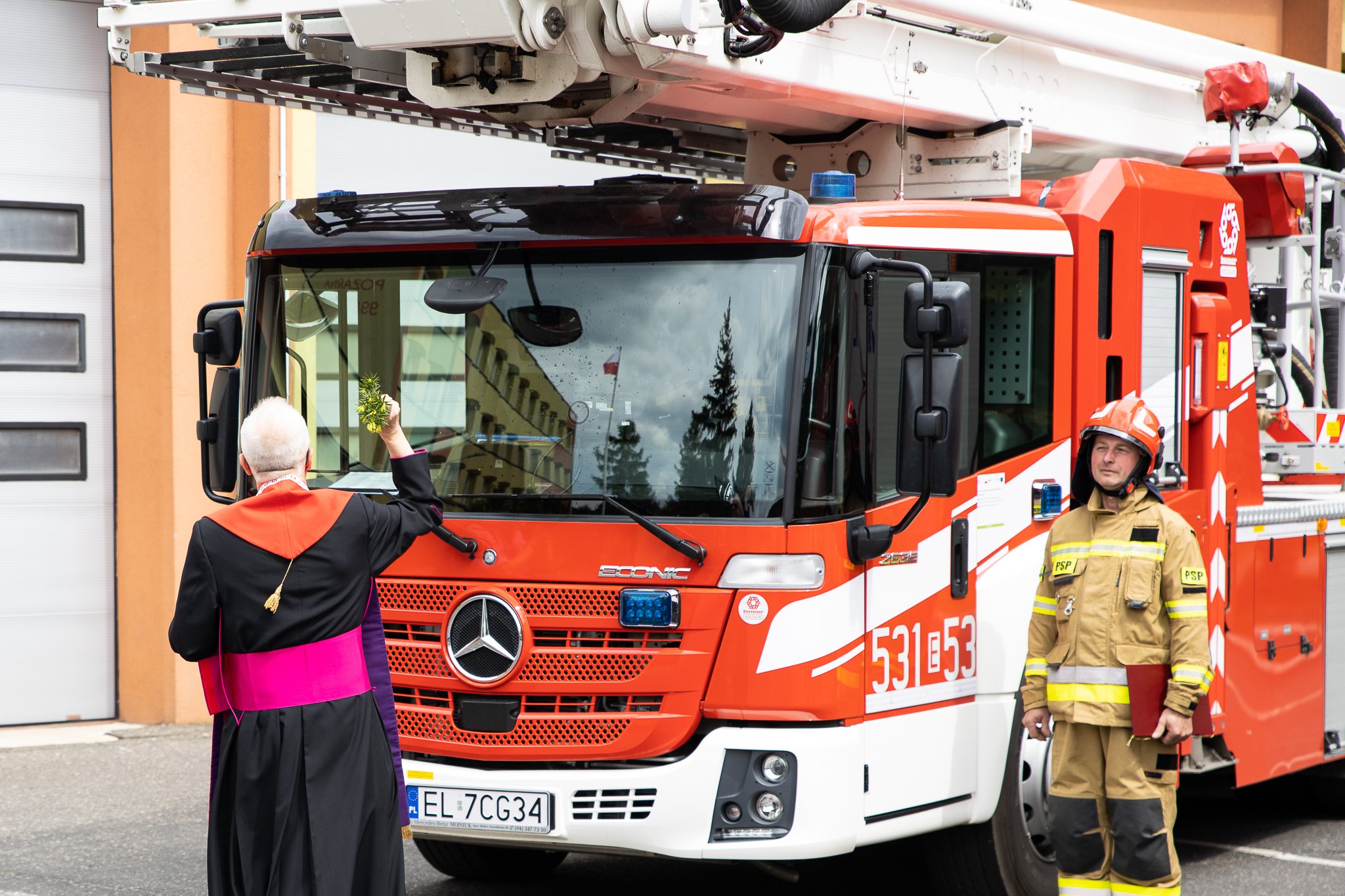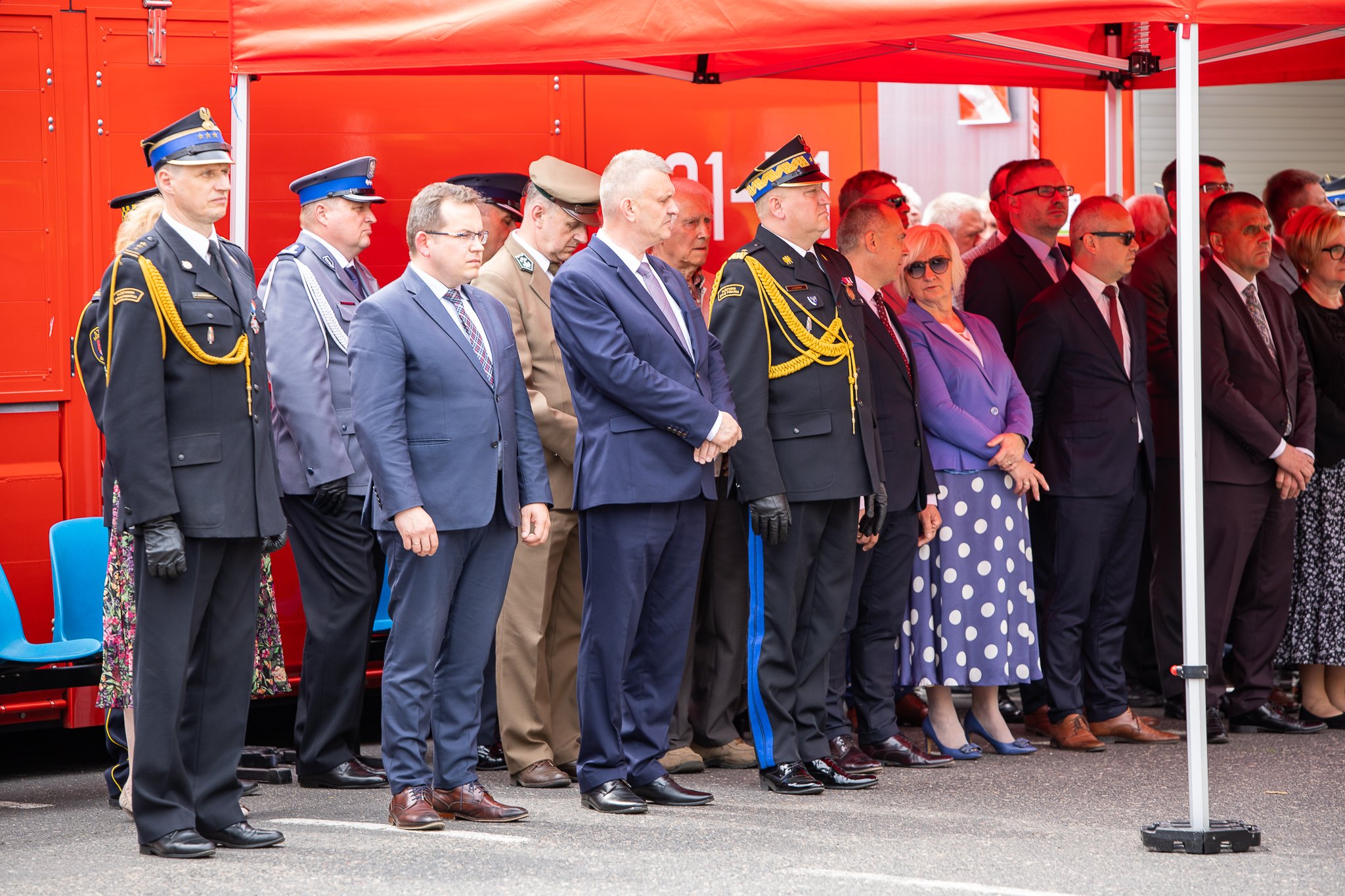 Podczas uroczystości dokonano również symbolicznego przekazania i poświęcenia samochodów bojowych: ciężkiego samochodu ratowniczo-gaśniczego oraz podnośnika hydraulicznego