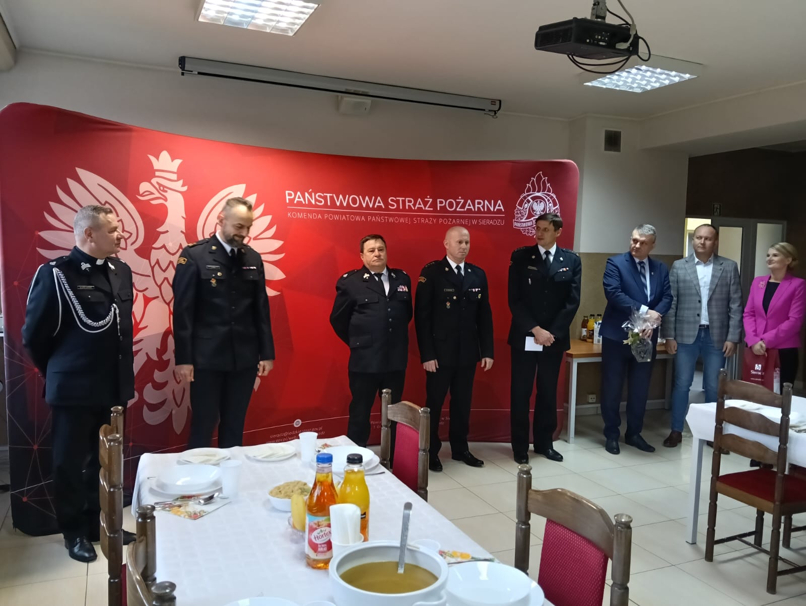 W dniu dzisiejszym w Komendzie Powiatowej Państwowej Straży Pożarnej w Sieradzu, odbyło się uroczyste spotkanie wigilijne, w którym uczestniczyli funkcjonariusze, pracownicy cywilni oraz zaproszeni goście. Był to szczególny czas, pełen refleksji, życzeń i podziękowań za miniony rok wspólnej służby na rzecz Naszej społeczności. Komendanci oraz przybyli goście podziękowali wszystkim za zaangażowanie i poświęcenie w służbie oraz życzyli spokojnych i bezpiecznych Świąt Bożego Narodzenia.