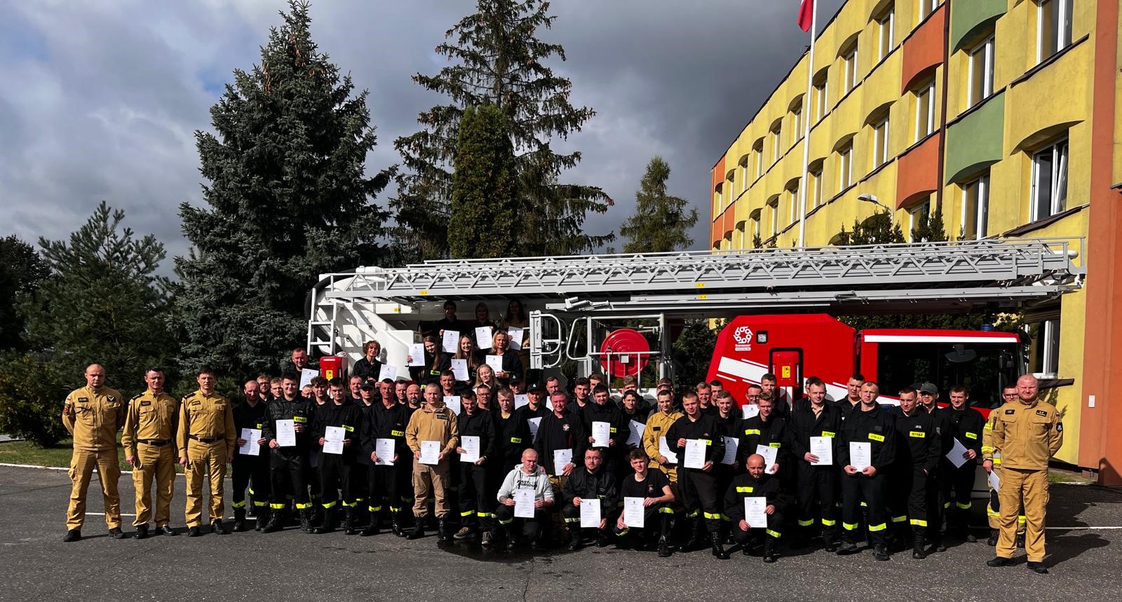 Absolwentom gratulujemy ukończenia szkolenia i życzymy owocnej i bezpiecznej służby w szeregach Jednostek Ochrony Przeciwpożarowej powiatu sieradzkiego.