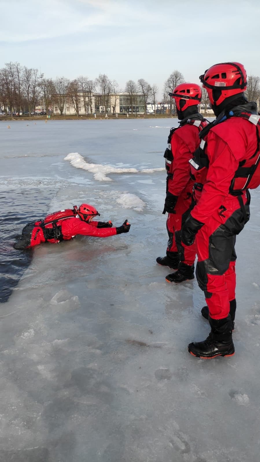 - w przypadku załamania się lodu, zachowaj spokój, wezwij pomoc,
