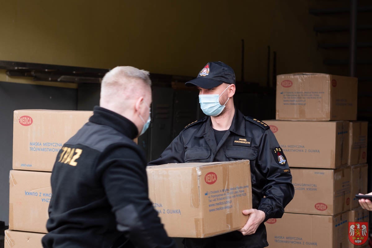 Partia ponad 200 000 jednorazowych maseczek otrzymanych od Wojewody Mazowieckiego, przeznaczonych dla mieszkańców wszystkich gmin oraz parafii powiatu sierpeckiego, trafiła do Komendy Powiatowej Państwowej Straży Pożarnej w Sierpcu w celu czasowego ich przechowania.