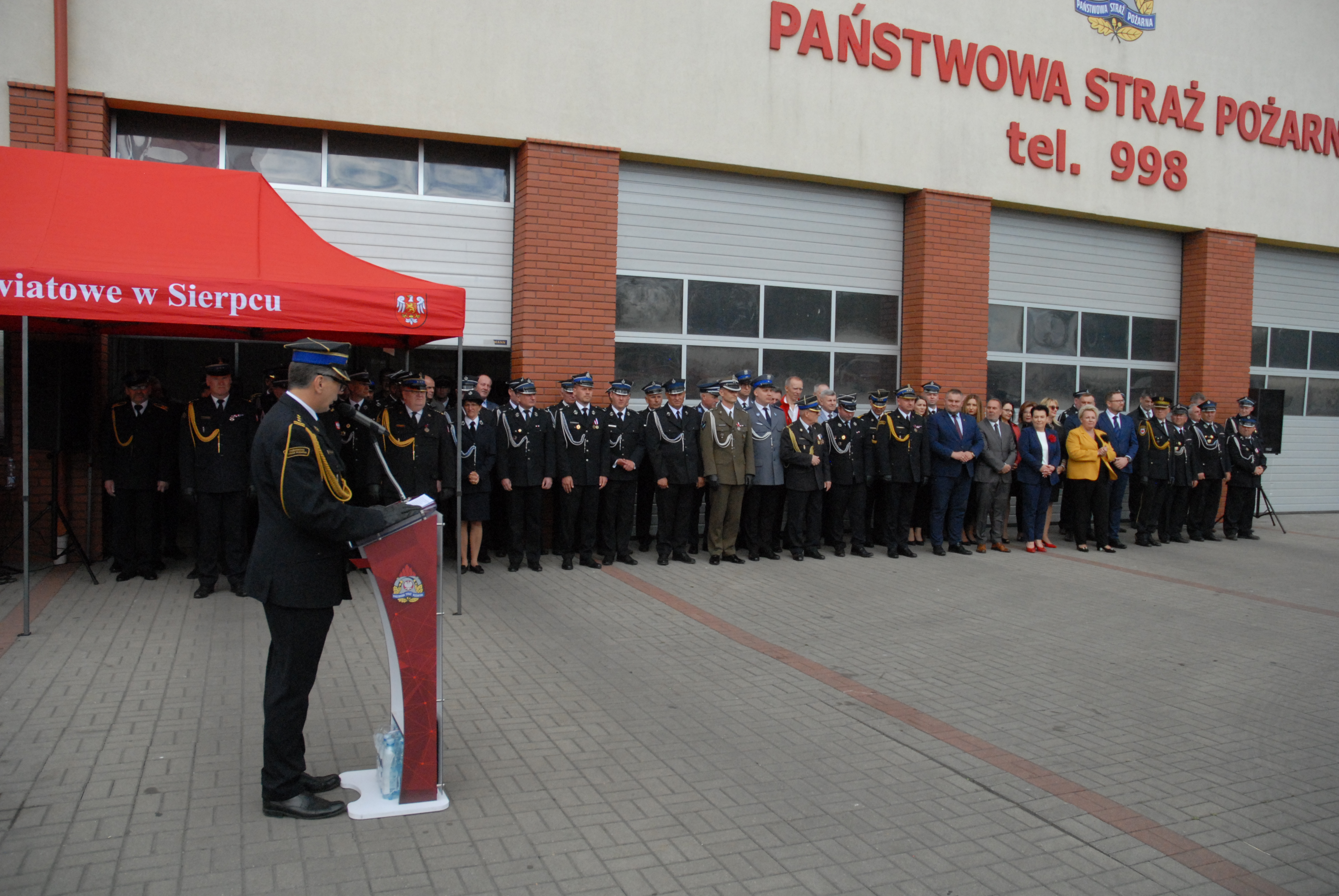 Uroczystość rozpoczęła się złożeniem przez dowódcę uroczystości st. kpt. Marcina Mazurowskiego meldunku, który przyjął st. bryg. Maciej Bieńczyk. Po odegraniu Mazurka Dąbrowskiego, Komendant Powiatowy PSP w Sierpcu st. bryg. Paweł Sekulski przywitał wszystkich uczestników obchodów.
