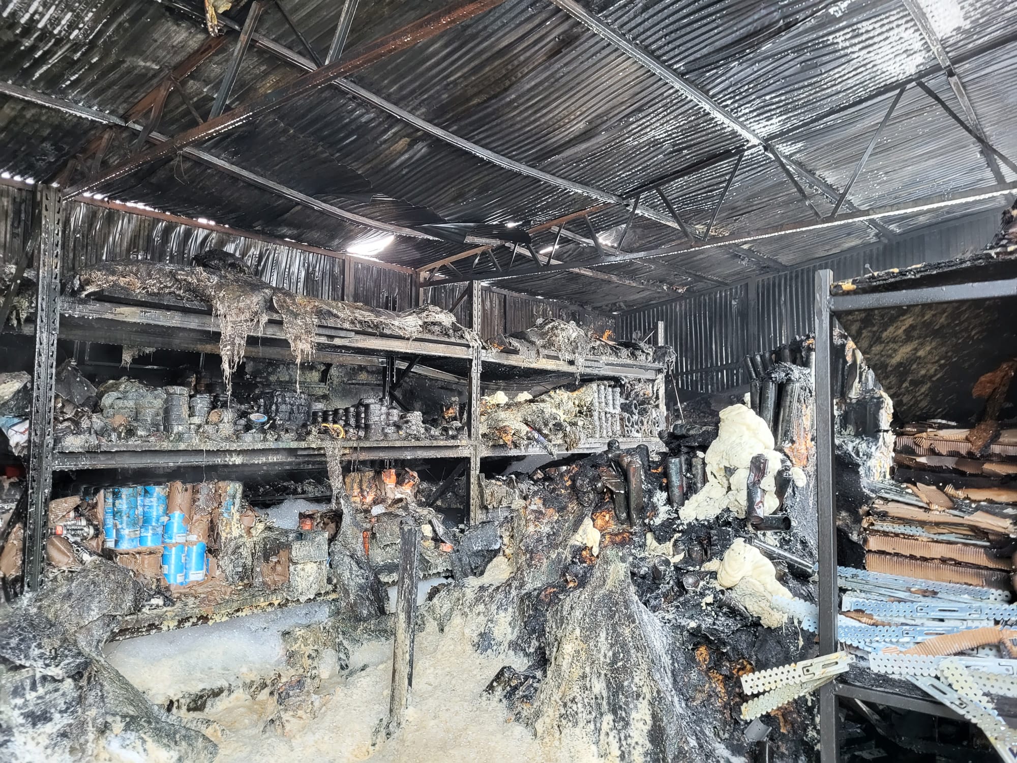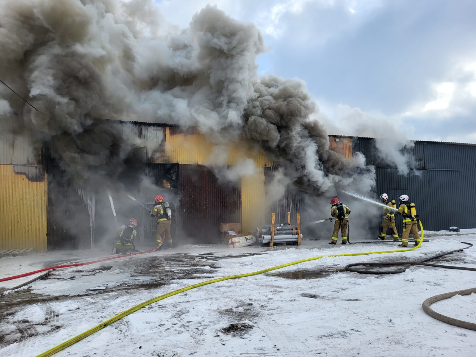 Pożar w magazynie materiałów budowlanych