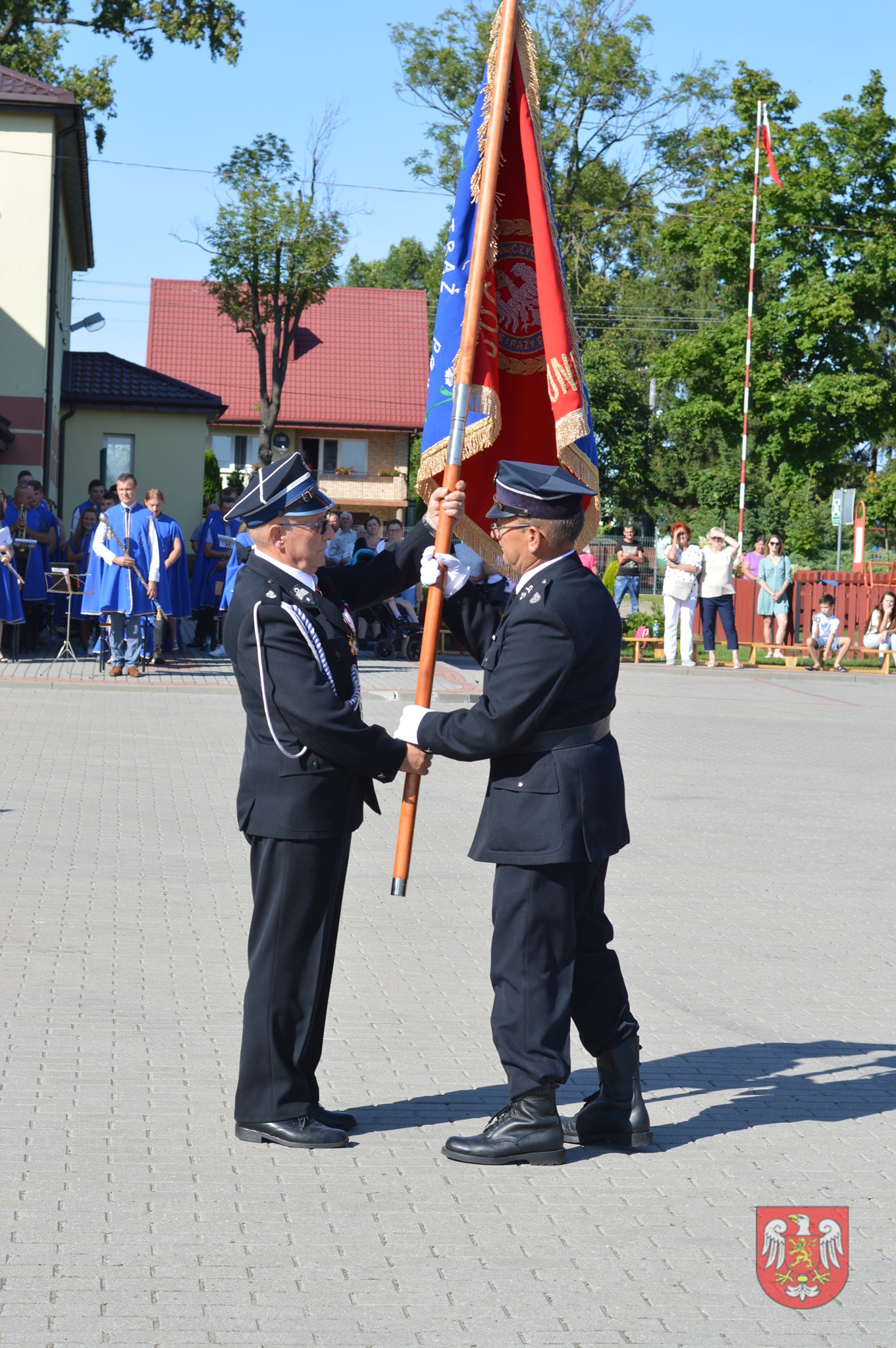 Po poświęceniu, nastąpiła ceremonia przekazania nowo zakupionego sztandaru, prezesowi OSP druhowi Zbigniewowi Peda, który wręczył sztandar przedstawicielowi pocztu sztandarowego z OSP w Ligowie.