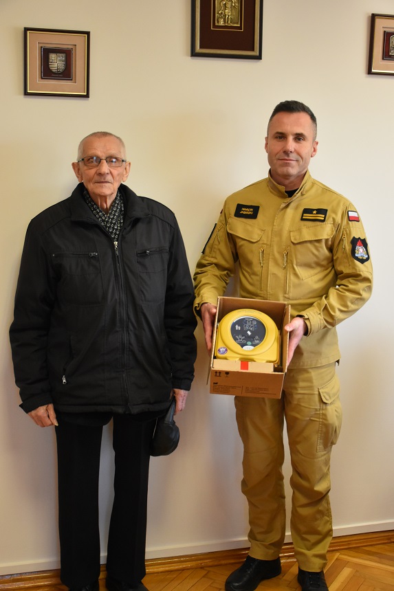 1 lutego 81-letni Pan Tadeusz jechał rowerem na zakupy do pobliskiego marketu. Tego dnia niestety nie udało mu się dojechać. Przejeżdżając obok budynku KP PSP w Skarżysku-Kamiennej zasłabł i upadł na jezdnię. Kobieta która przechodziła w pobliżu, widząc leżącego mężczyznę wbiegła do budynku Komendy i zaalarmowała strażaków. Dzięki jej szybkiej reakcji, strażacy chwycili za torbę medyczną z defibrylatorem AED i wybiegli z pomocą poszkodowanemu mężczyźnie. Po około 10 minutach prowadzenia resuscytacji krążeniowo oddechowej z wykorzystaniem defibrylatora udało się przywrócić pracę serca Pana Tadeusza.