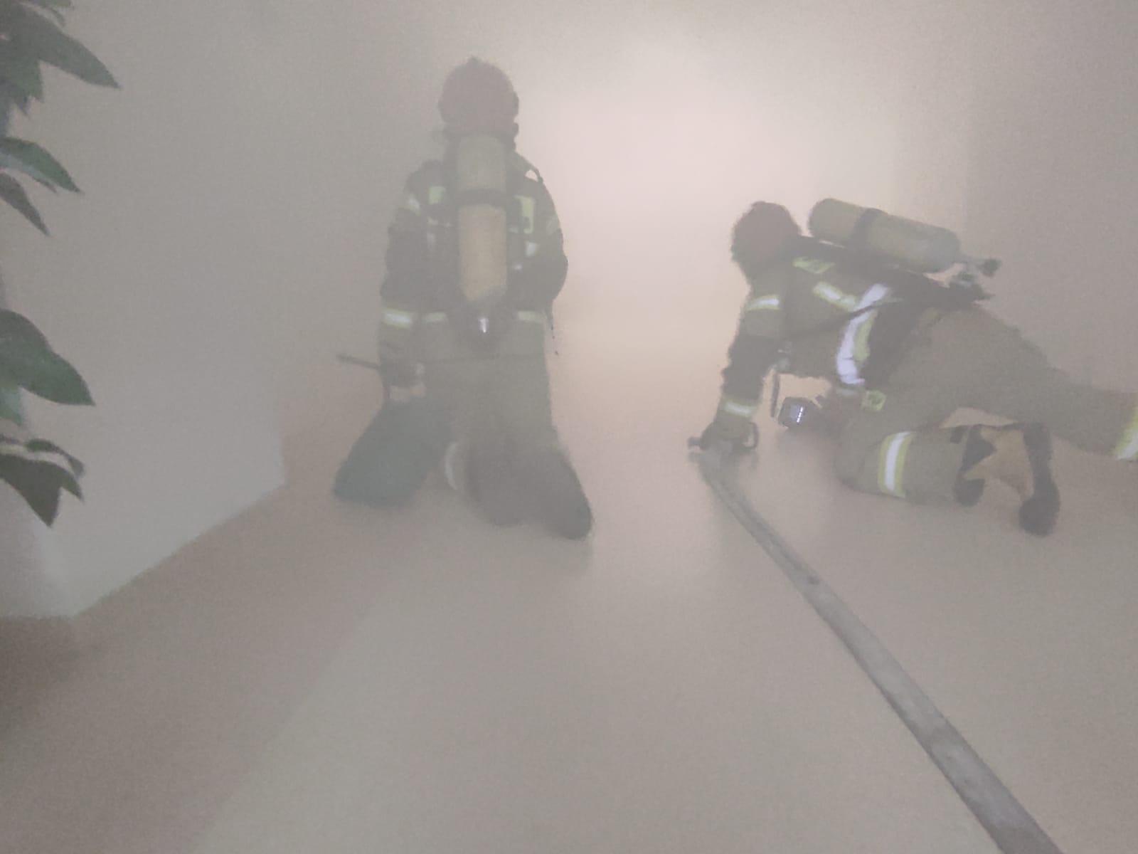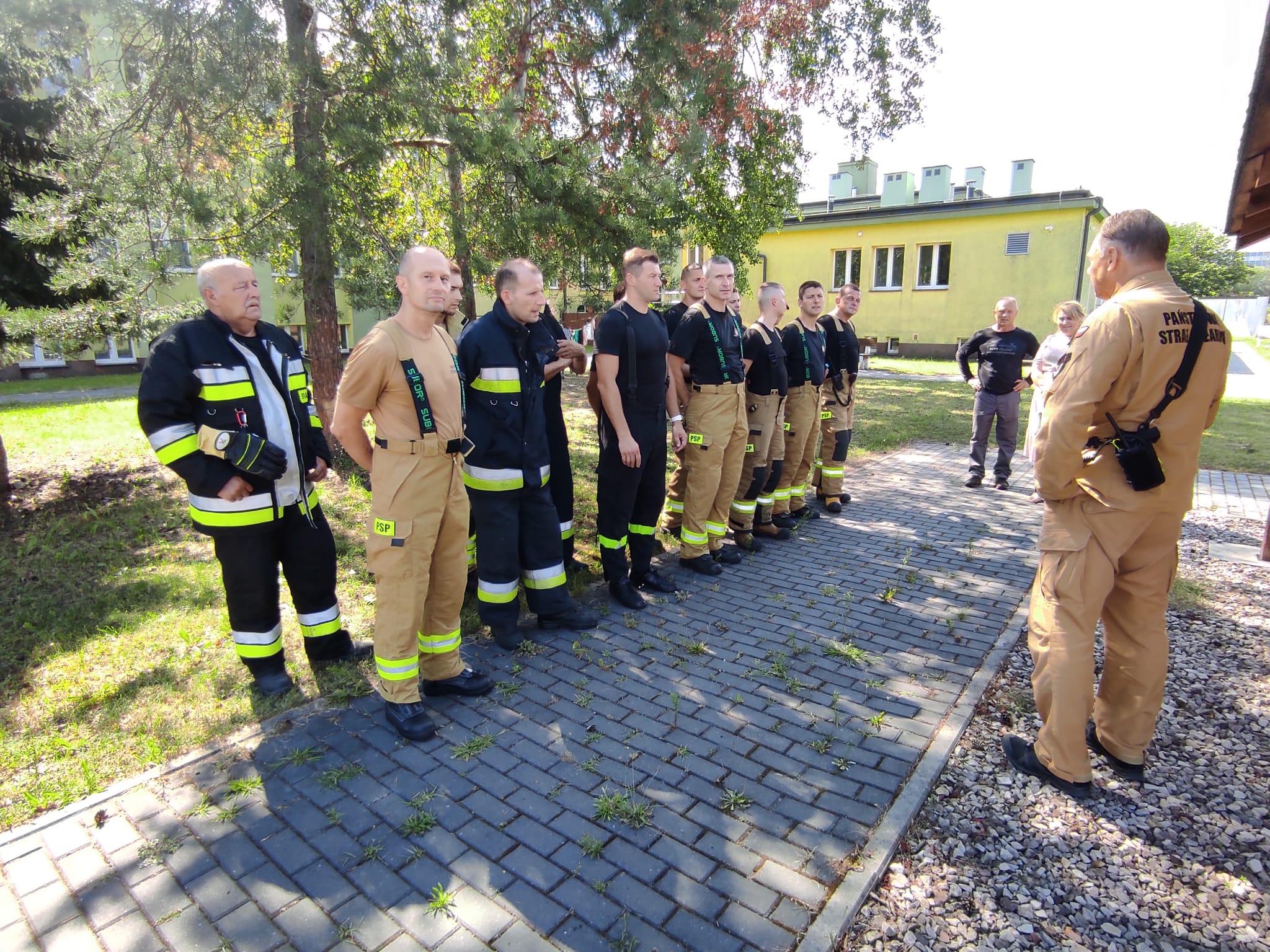 07 sierpnia br. w ramach doskonalenia zawodowego strażaków odbyły się ćwiczenia na obiekcie jakim był Dom Pomocy Społecznej „Centrum Seniora” przy ul. Ekonomii w Skarżysku-Kamiennej. Ćwiczenia odbywały się w czasie rzeczywistym tak, aby jak najbardziej odwzorować działania na wypadek powstania realnego pożaru. Pożar został zasymulowany za pomocą zadymiarki teatralnej, z której wytworzony dym wzbudził czujki dymu i uruchomił alarm systemu sygnalizacji pożarowej w budynku. Wymusiło to na pracownikach DPS zgłoszenie zdarzenia na numer alarmowy, próbę samodzielnego ugaszenia pożaru za pomocą gaśnic oraz podjęcie ewakuacji około 50 pensjonariuszy o ograniczonej zdolności poruszania się. Po dojeździe na miejsce ćwiczeń strażackich zastępów, pracownicy DPS przekazali informację, że wybuchł pożar na pierwszym piętrze w pomieszczeniu palarni oraz, że 1 osoba z personelu pozostała w budynku. Działania strażaków polegały na zabezpieczeniu terenu działań, pomocy w bezpieczniej ewakuacji pensjonariuszy, rozwinięciu dwóch linii gaśniczych celem ugaszenia źródła pożaru. Następnie przeszukano cały obiekt pod kątem obecności osób poszkodowanych, ewakuacji i udzieleniu kwalifikowanej pierwszej pomocy osobie poszkodowanej, a także przewietrzaniu i oddymianiu budynku po ugaszeniu pożaru.